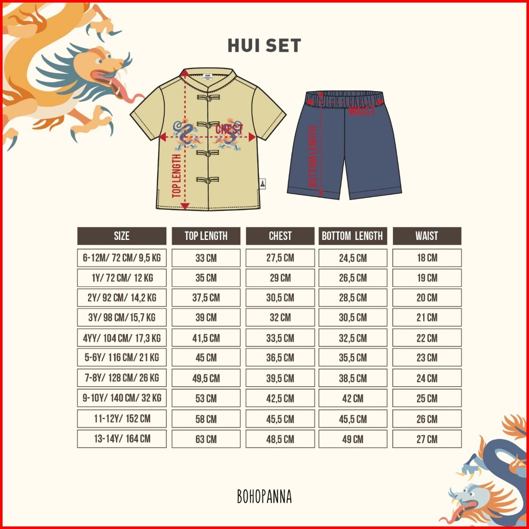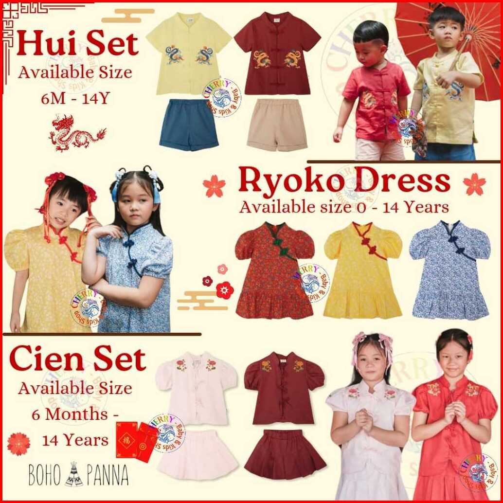 Bohopanna 0-14 Tahun Cny Series Hui Set Ryoko Dress Cien Set Setelan Imlek Anak Laki Laki Dress Cheongsam Anak Perempuan