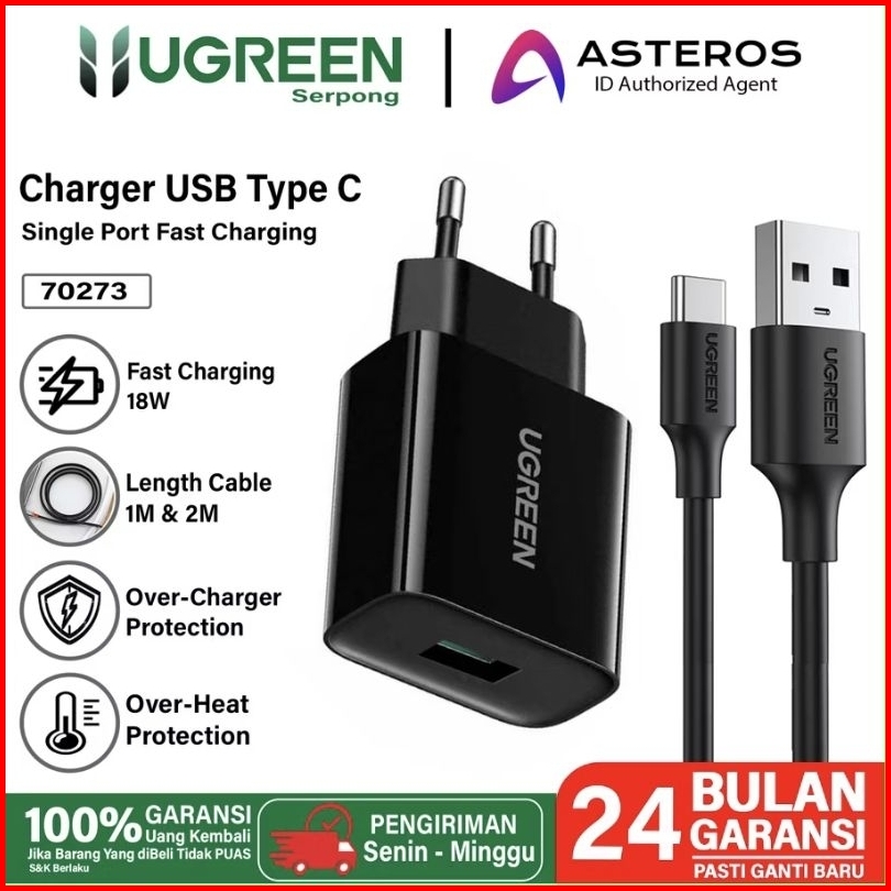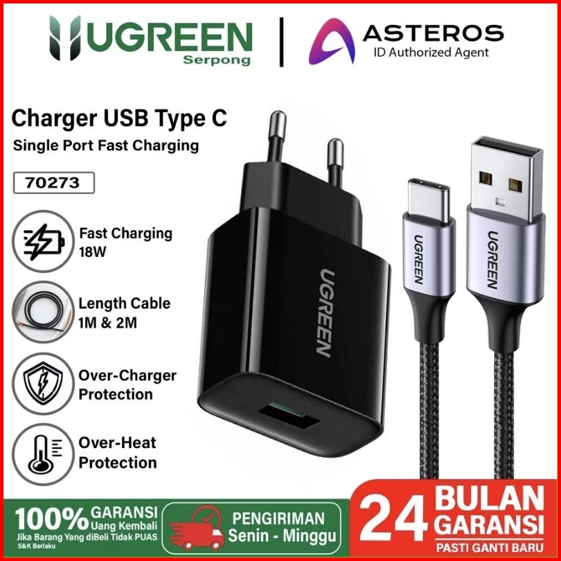 Ugreen Charger 18w Kabel Type C 1m Qc 3.0 Fast Charging