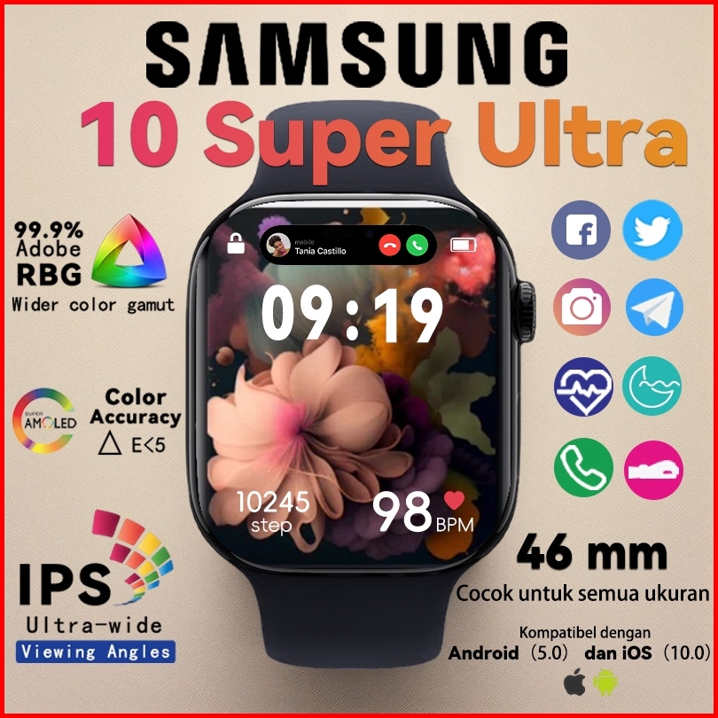 Samsung Smartwatch Terbaru I9 Super Ultra Series 10 Wanita Tahan Air Jam Pintar Bluetooth Olahraga Smart Watch Gps Peta