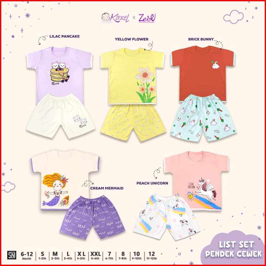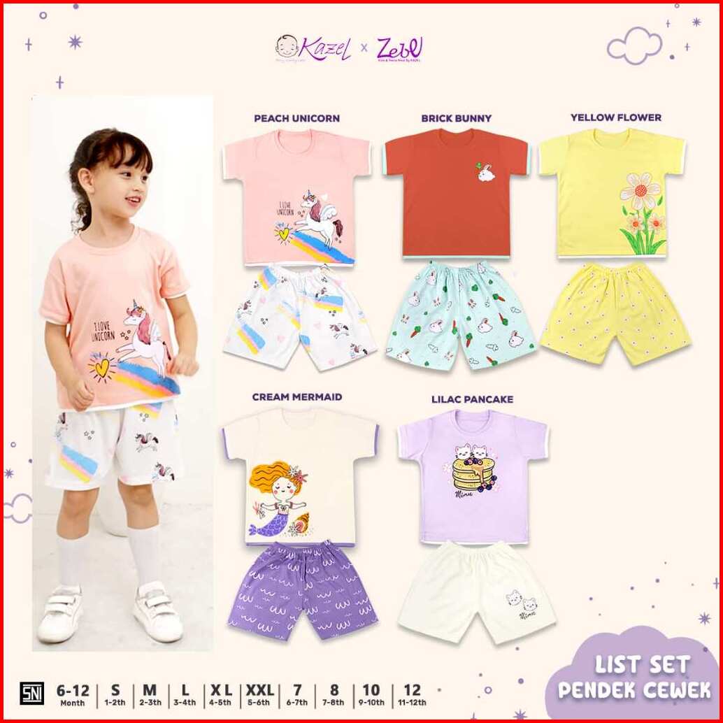 Kazel Zebe List Set Pendek Anak Perempuan 1stel 6bulan-11tahun