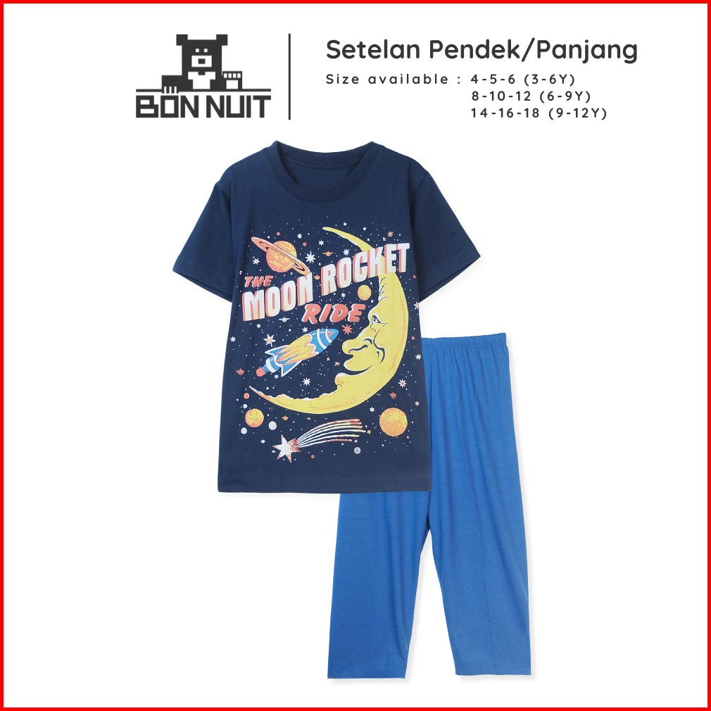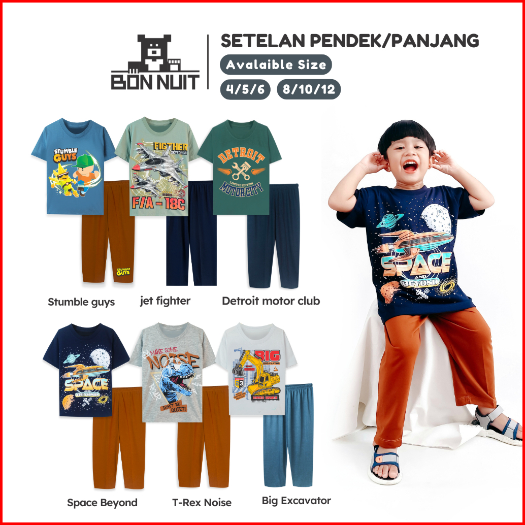Bonnuit - Setelan Piyama Lengan Pendek Pendek Celana Panjang Anak Laki Laki Lablador Excavator Series Set Pendek Panjang