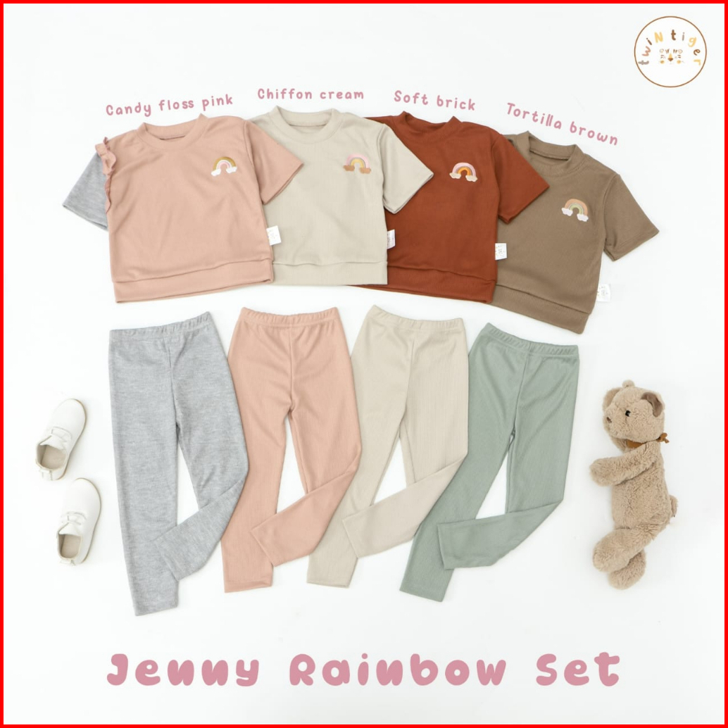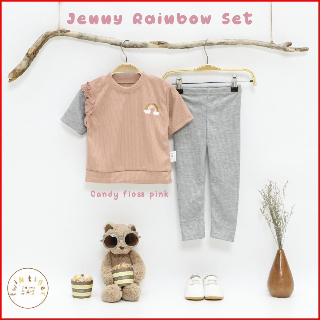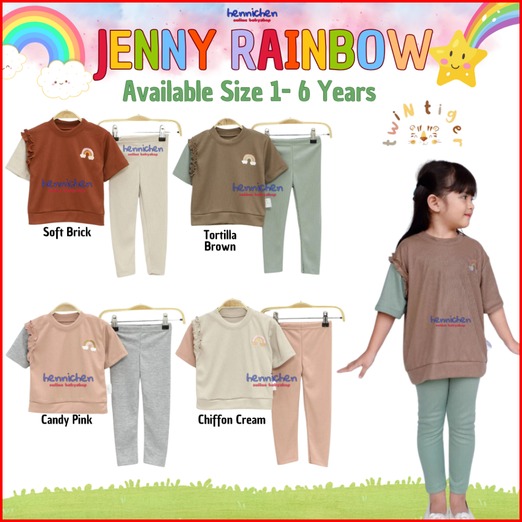 Twin Tiger Jenny Rainbow Set 1-6 Tahun Setelan Ruffle Pendek Panjang Tricolor Anak Perempuan