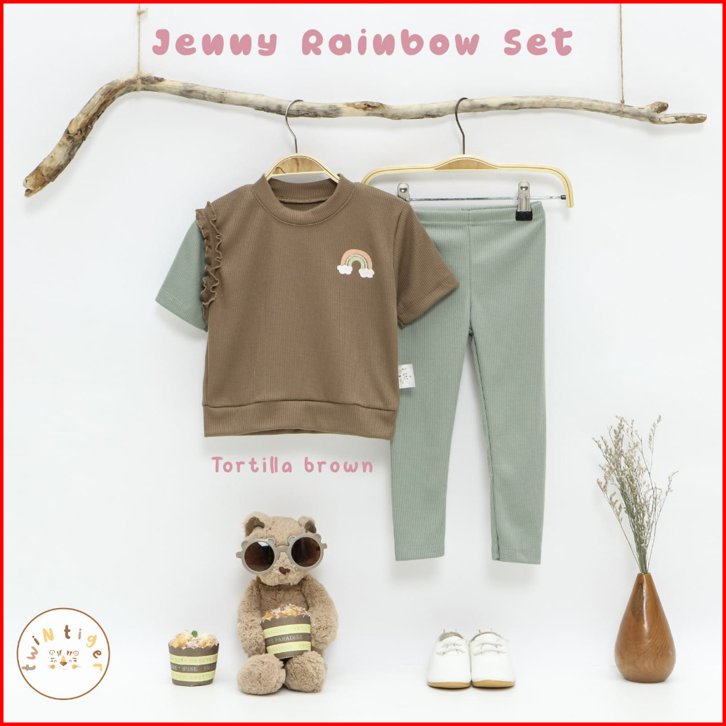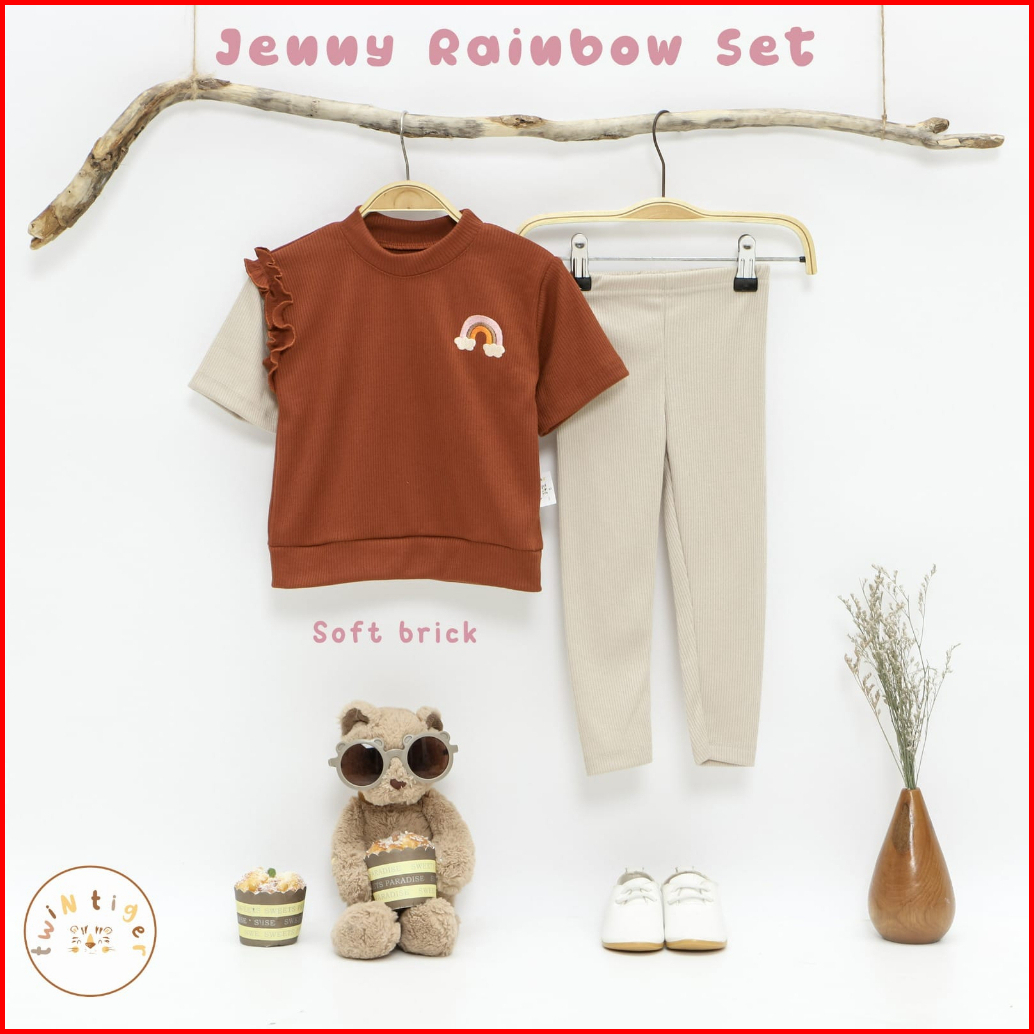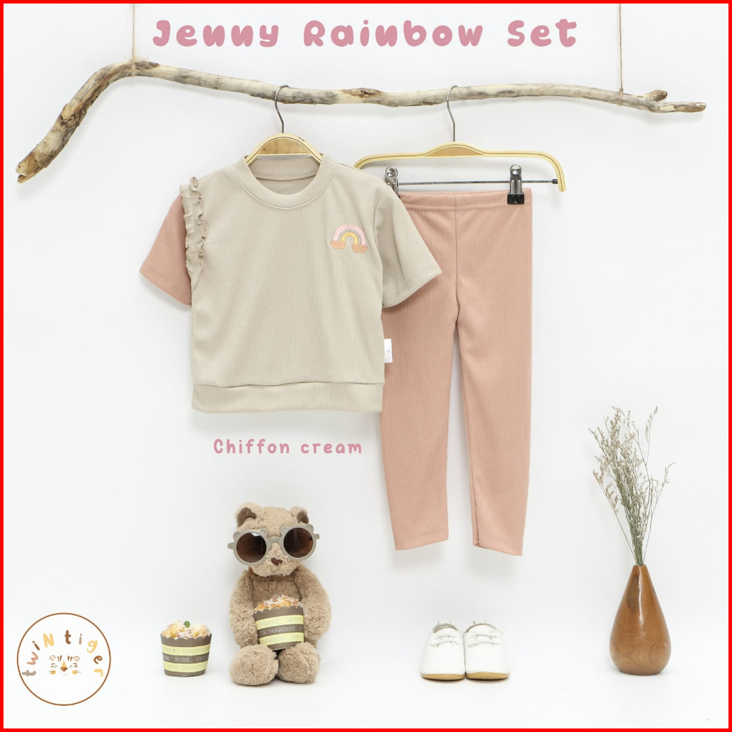 Twin Tiger Jenny Rainbow Set 1-6 Tahun Setelan Ruffle Pendek Panjang Tricolor Anak Perempuan