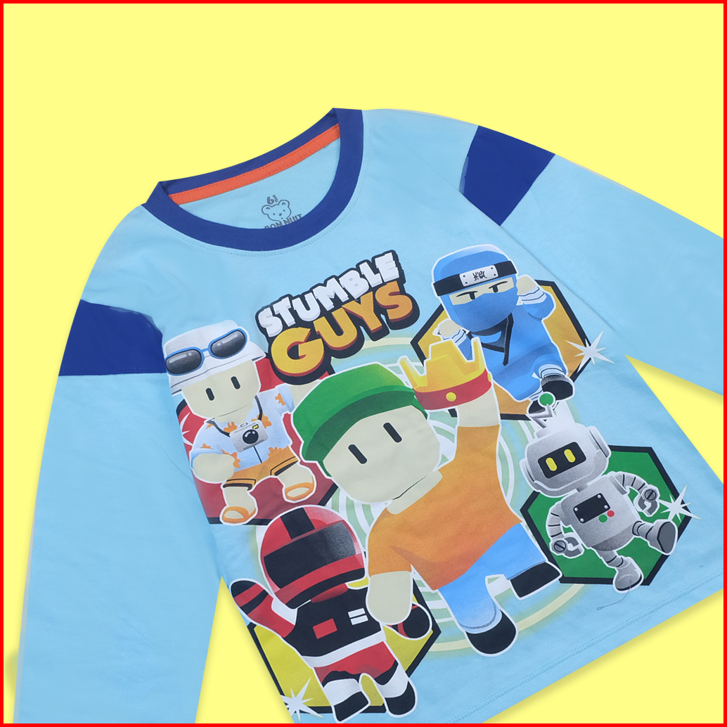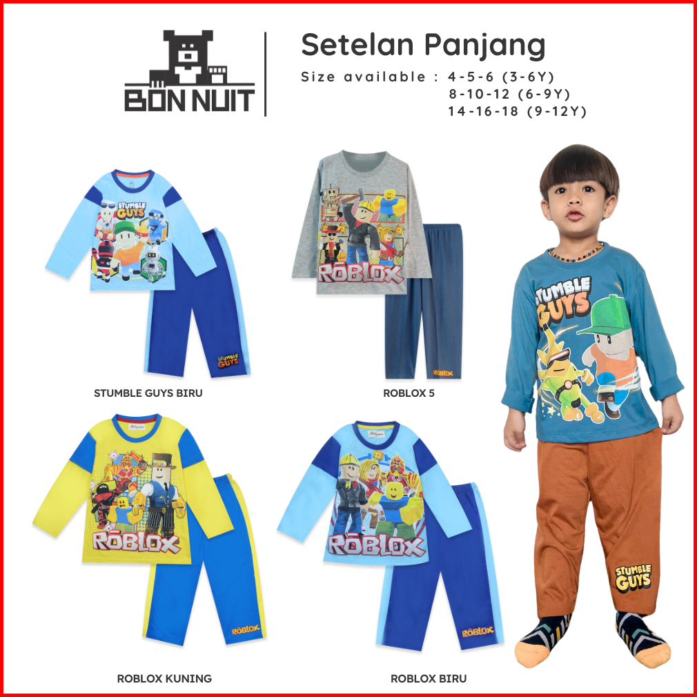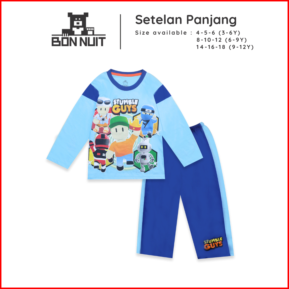 Bonnuit - Setelan Piyama Tangan Panjang Anak Laki Laki Stumble Guys Baju Roblox Series Usia 4 - 12 Tahun
