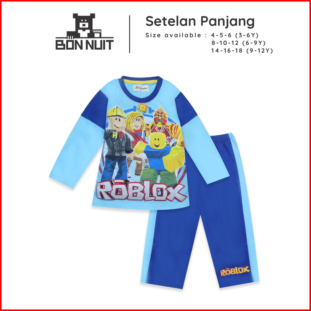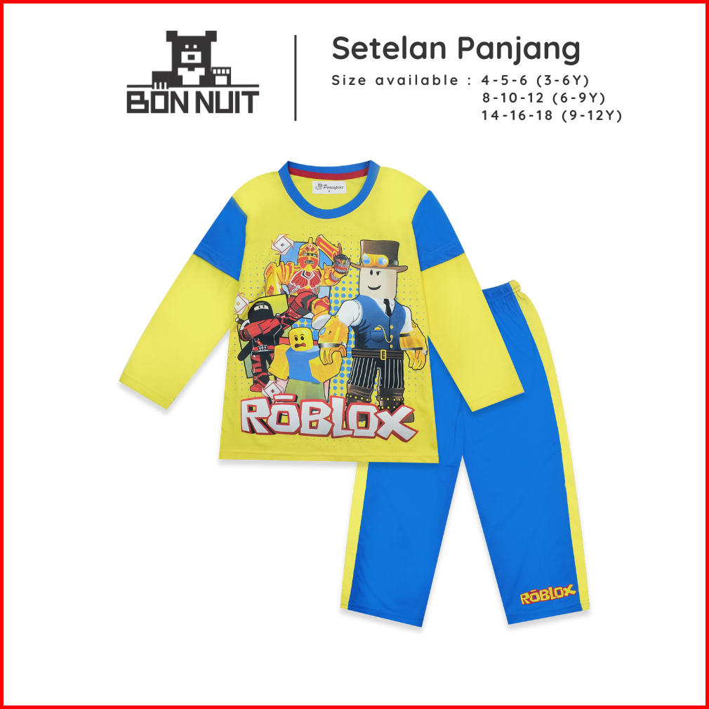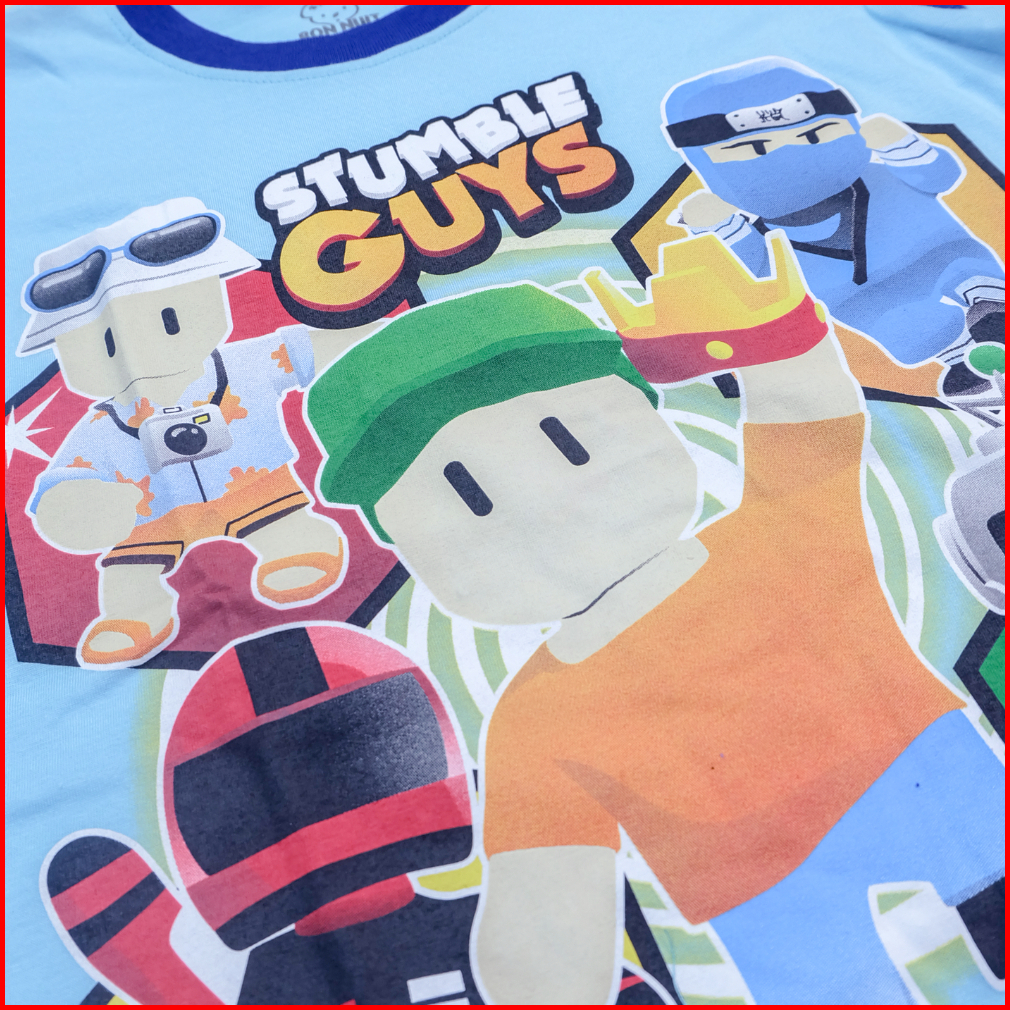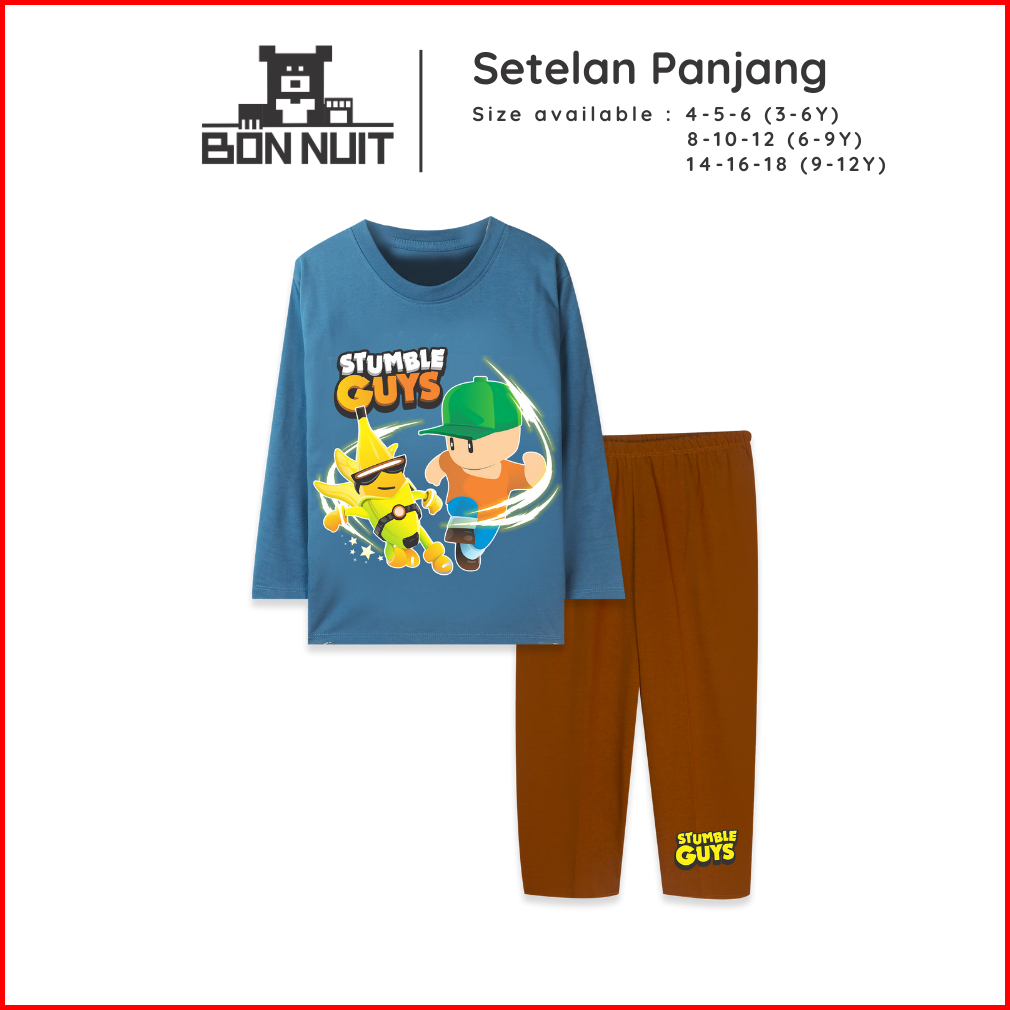 Bonnuit - Setelan Piyama Tangan Panjang Anak Laki Laki Stumble Guys Baju Roblox Series Usia 4 - 12 Tahun