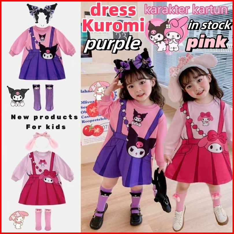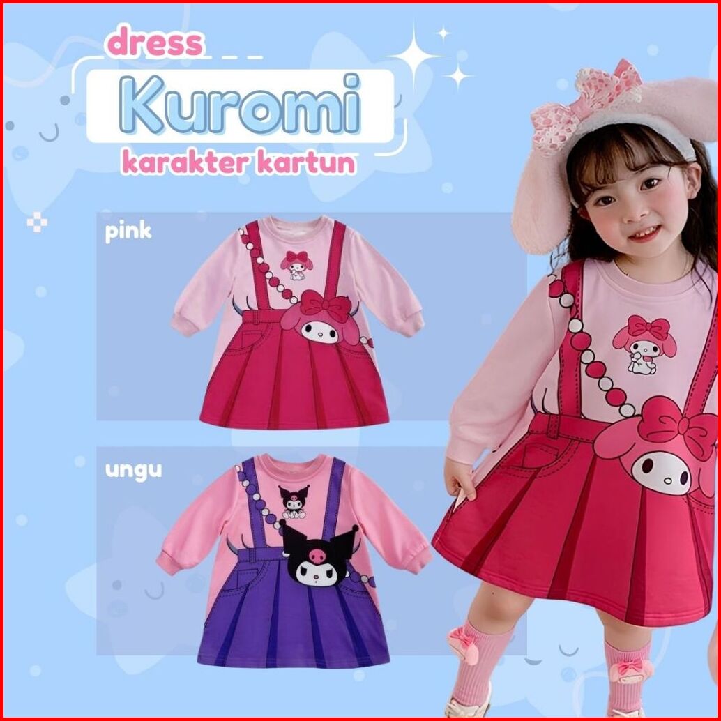 Hompimpaw 1-9 Tahun Gaun Kuromi Rick Rok Tas Pakaian Baju Anak Perempuan Dress Fashion Bayi