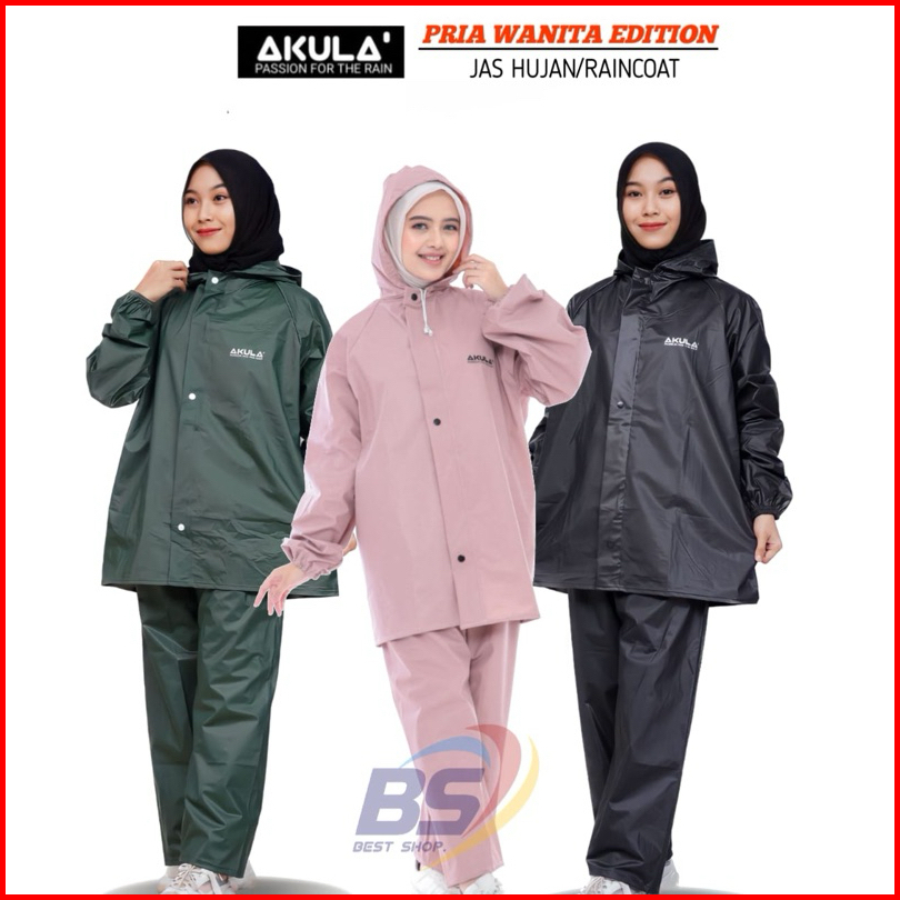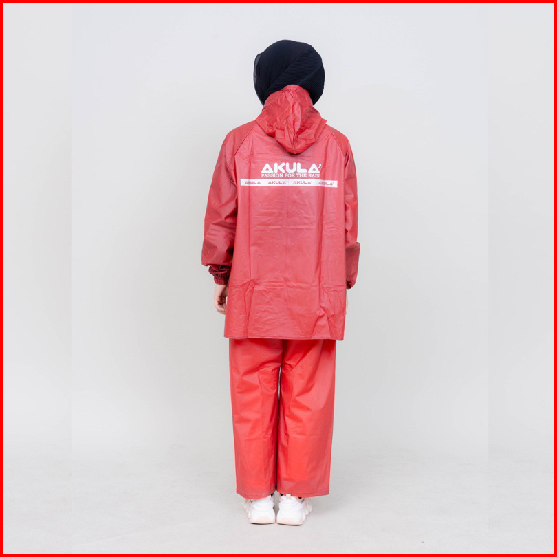Akula Jas Hujan Pria Wanita Setelan Baju Celana Bahan Pvc 025 Tebal Elastis Anti Rembes Terbaik