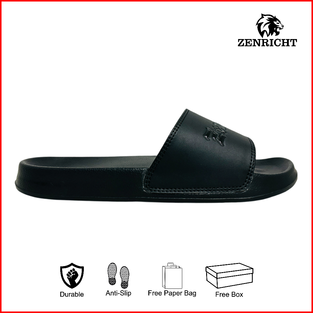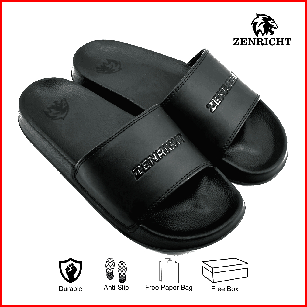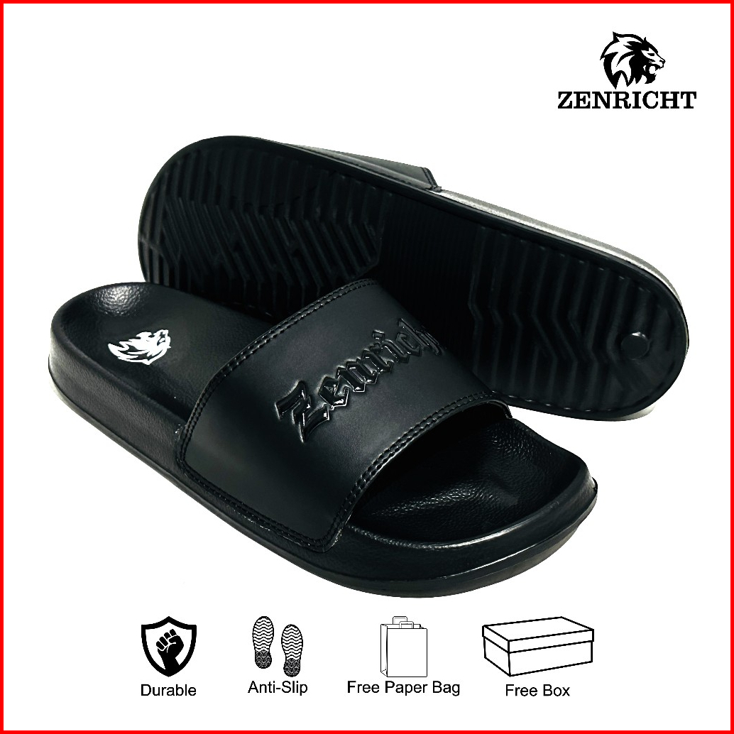 Zenricht Sandal Pria Sandal Slop Pria Sandal Pria Kekinian Sandal Slide Hitamd4