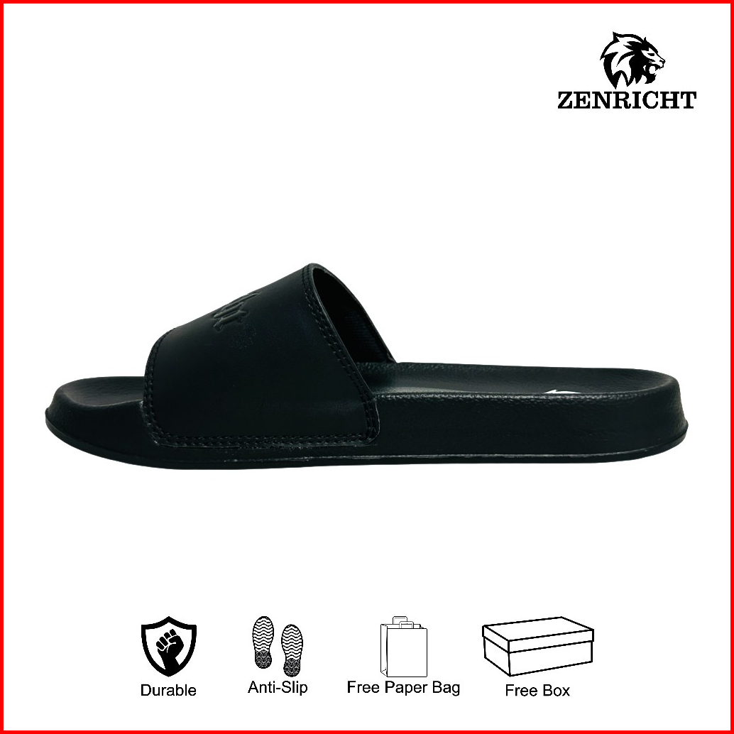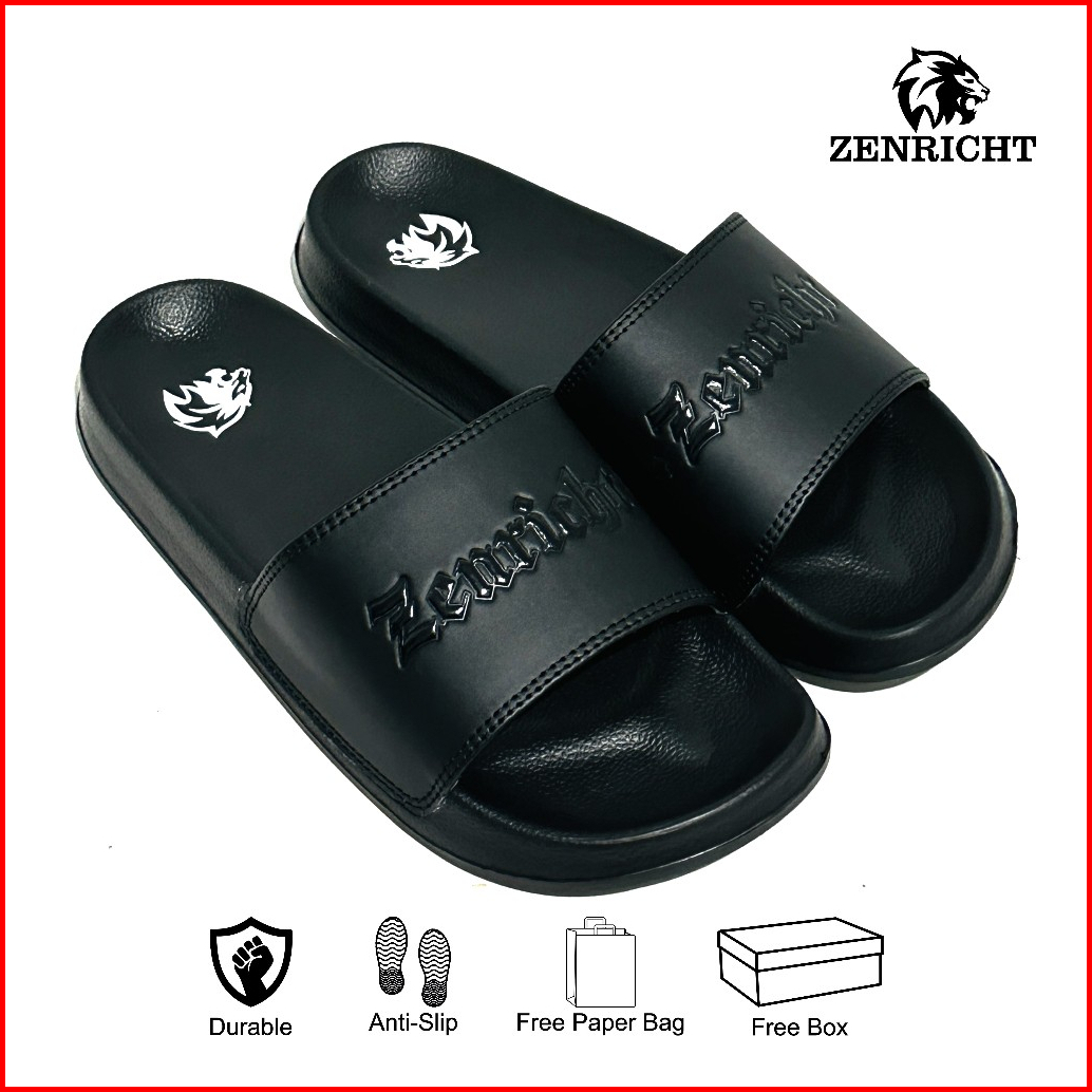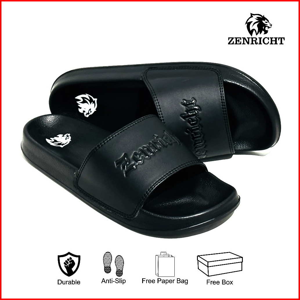 Zenricht Sandal Pria Sandal Slop Pria Sandal Pria Kekinian Sandal Slide Hitamd4