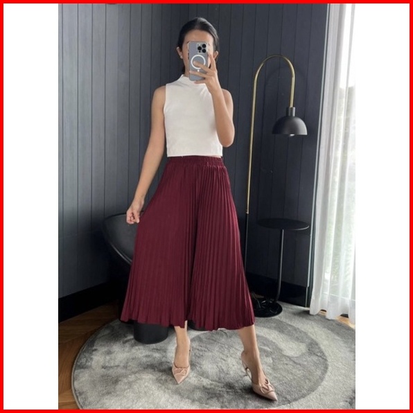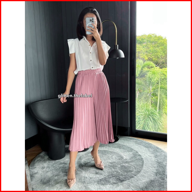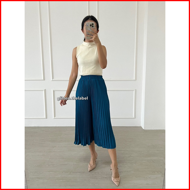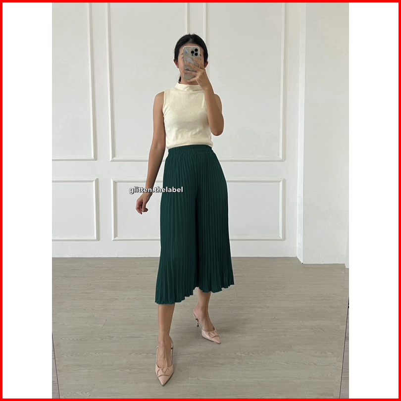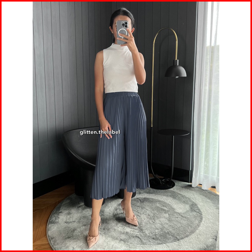 Glitten The Label Kulot Plisket Midi Mayung Kulot 7 8 Celana Kulot Midi Kulot Plisket Tanggung Pleats Pants 05