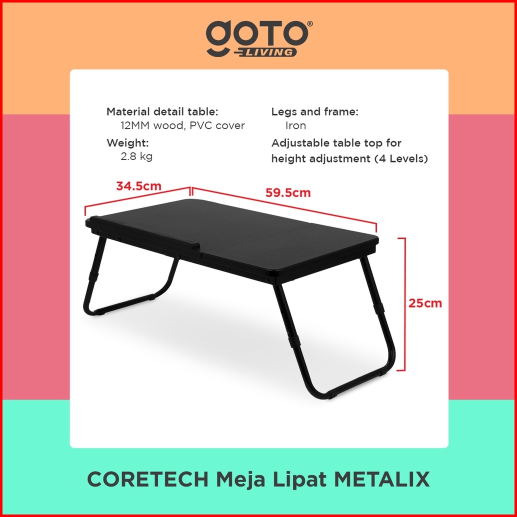 Coretech Metalix Meja Laptop Lipat Portable Belajar Serbaguna