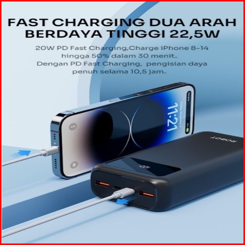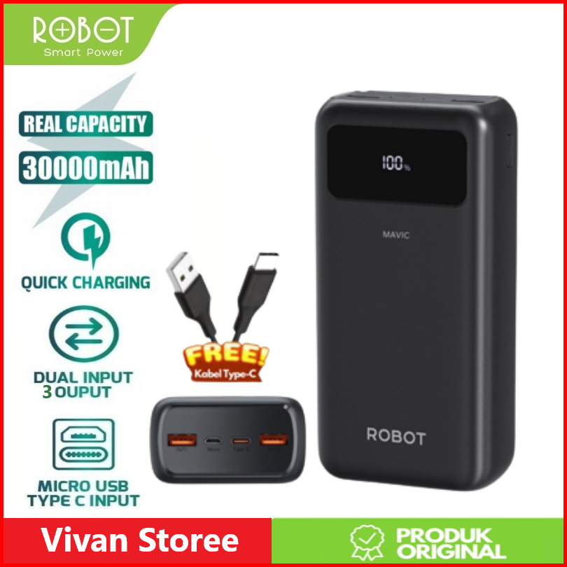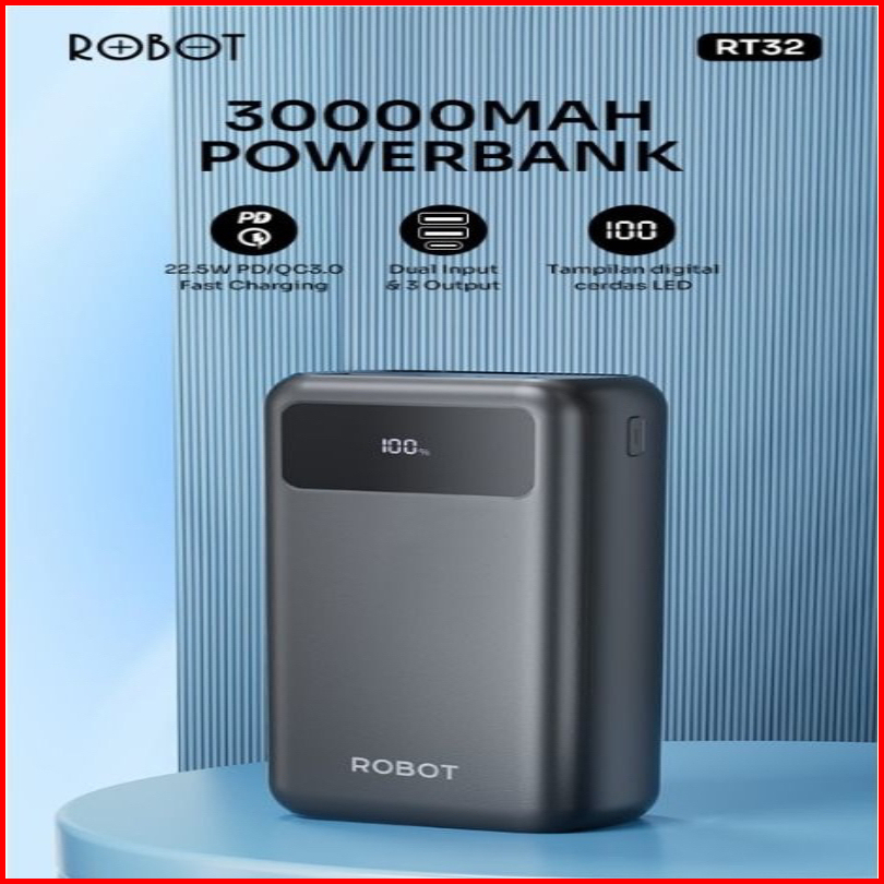 Robot Power Bank Rt32 30000mah Powerbank 3output 2input 22 5w Quick Charge Pd Qc3.0 Garansi Original Resmi
