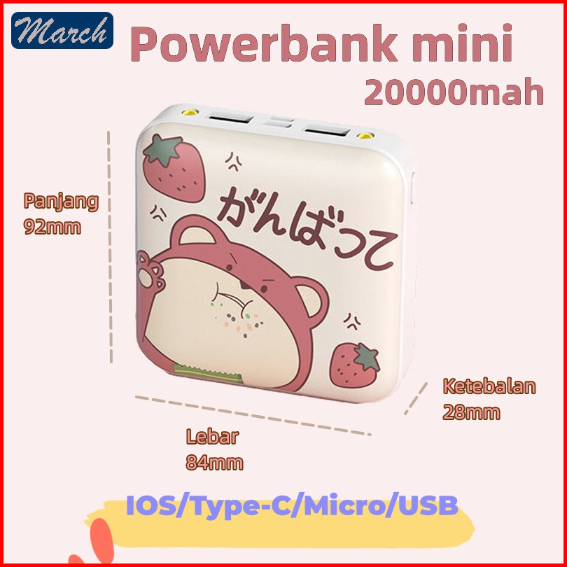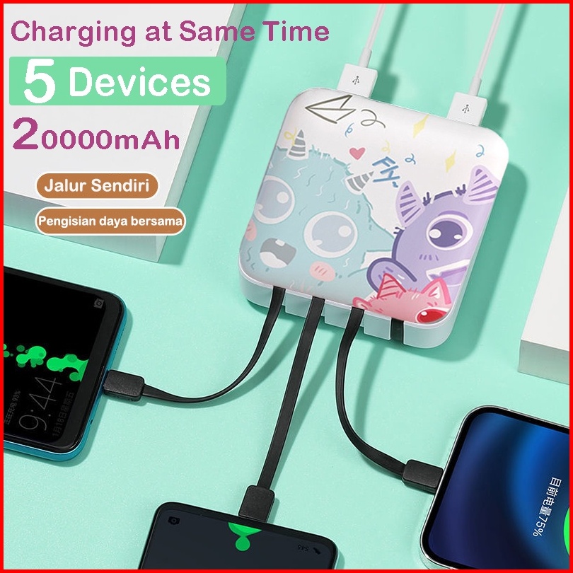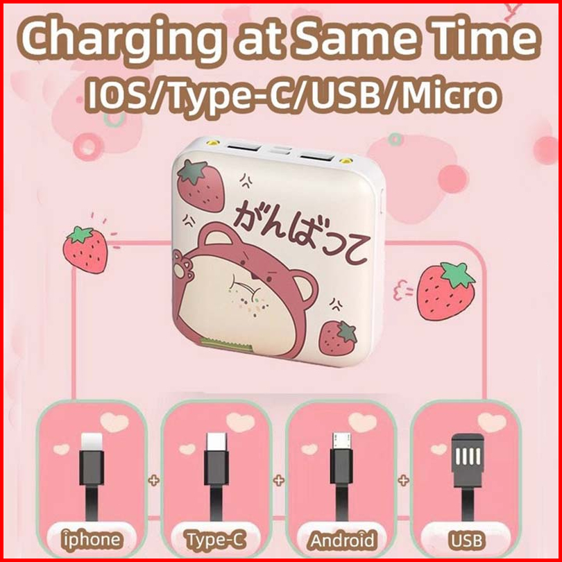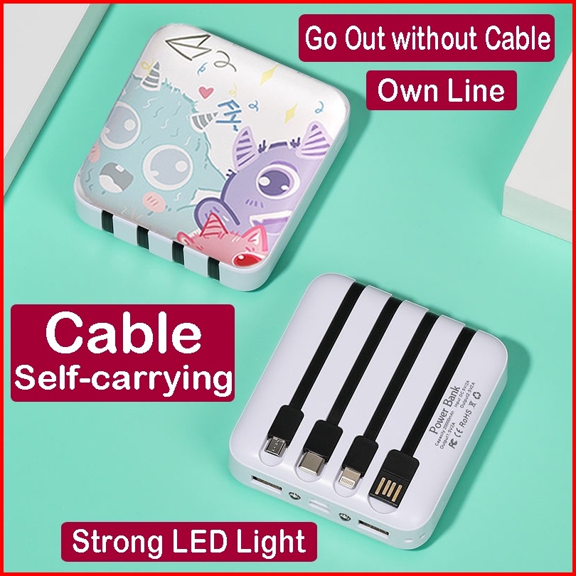Powerbank Mini 20000mah Built In Cable 5in1 Fast Charging Kartun External Battery 2.1a Power Bank For Iphone Lightning T