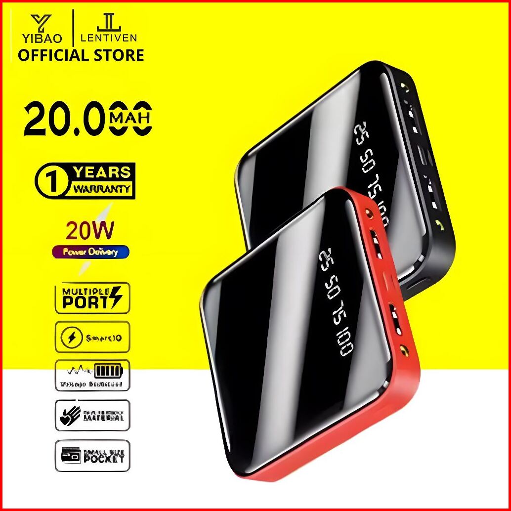 Yibao Lentiven Powerbank 20000 Mah Mini Size Portabel Fast Charging Led Display