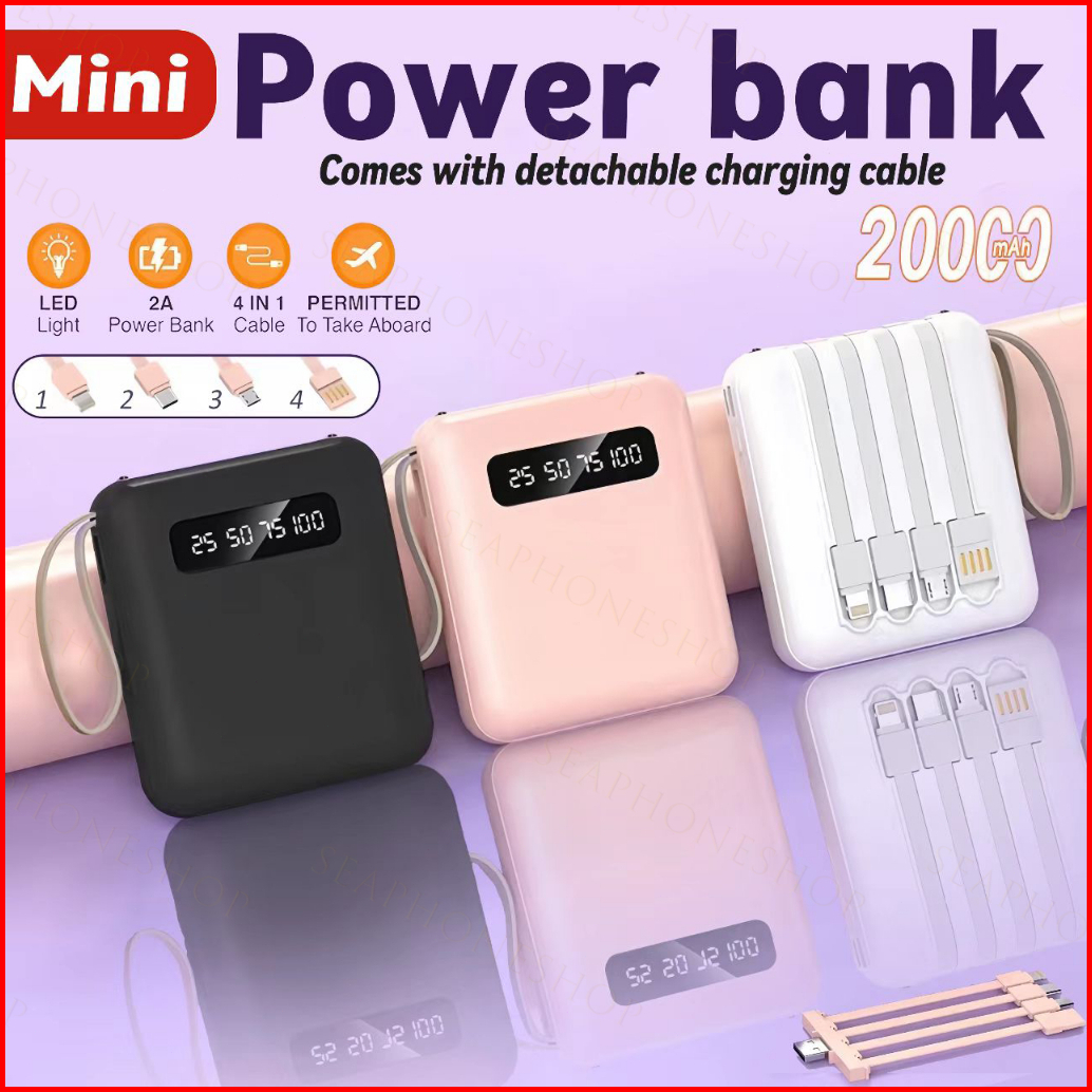 Mini Powerbank 20000 Mah With 4 Usb Fast Charging Lightweight Led Senter Display Power Bank External Powerbank Portable