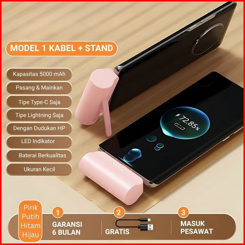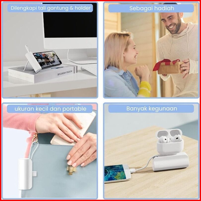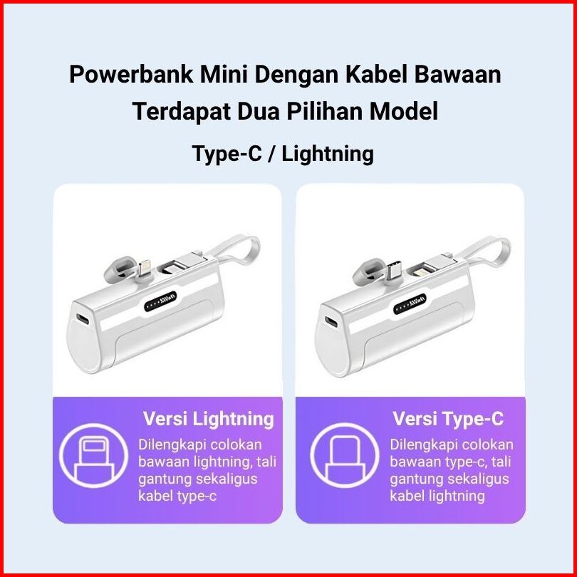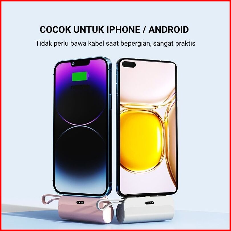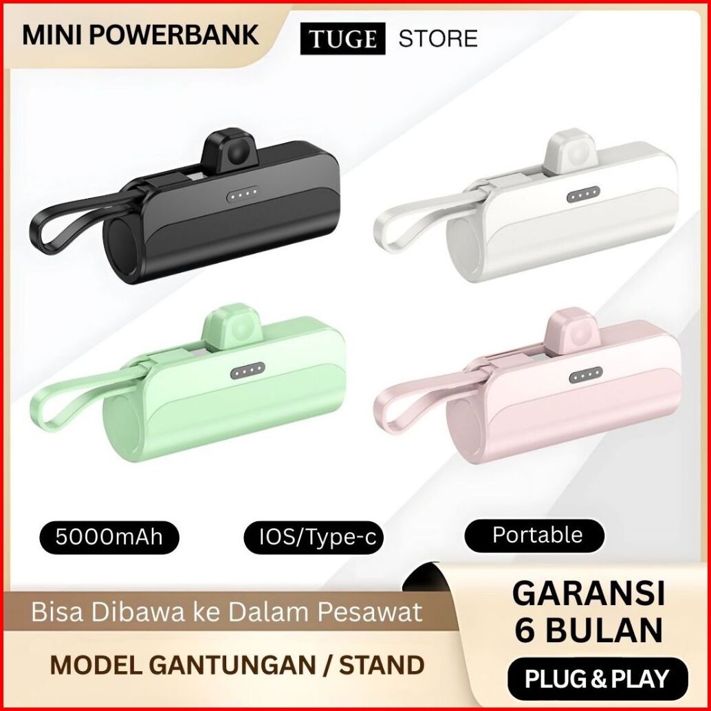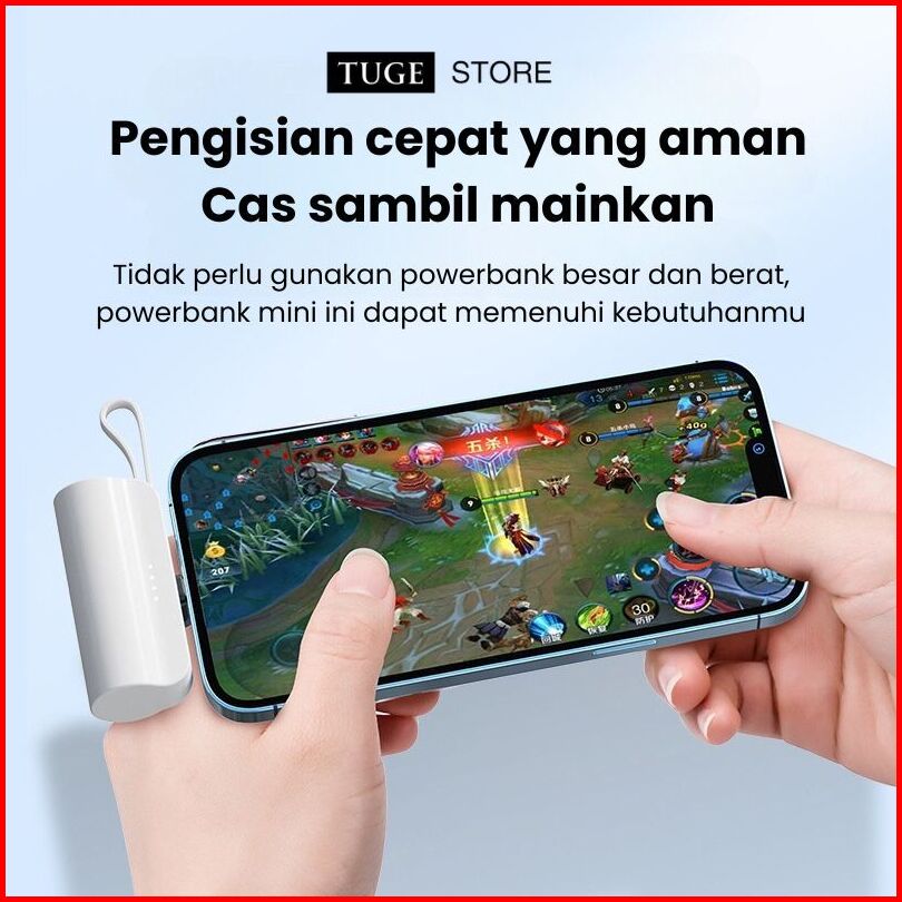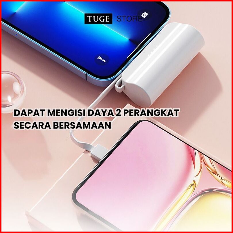 Tuge Mini Powerbank 5000 Mah Power Bank Kapsul Fast Charging Dengan Kabel Type C Lightning Portable Travel Size Pawerban