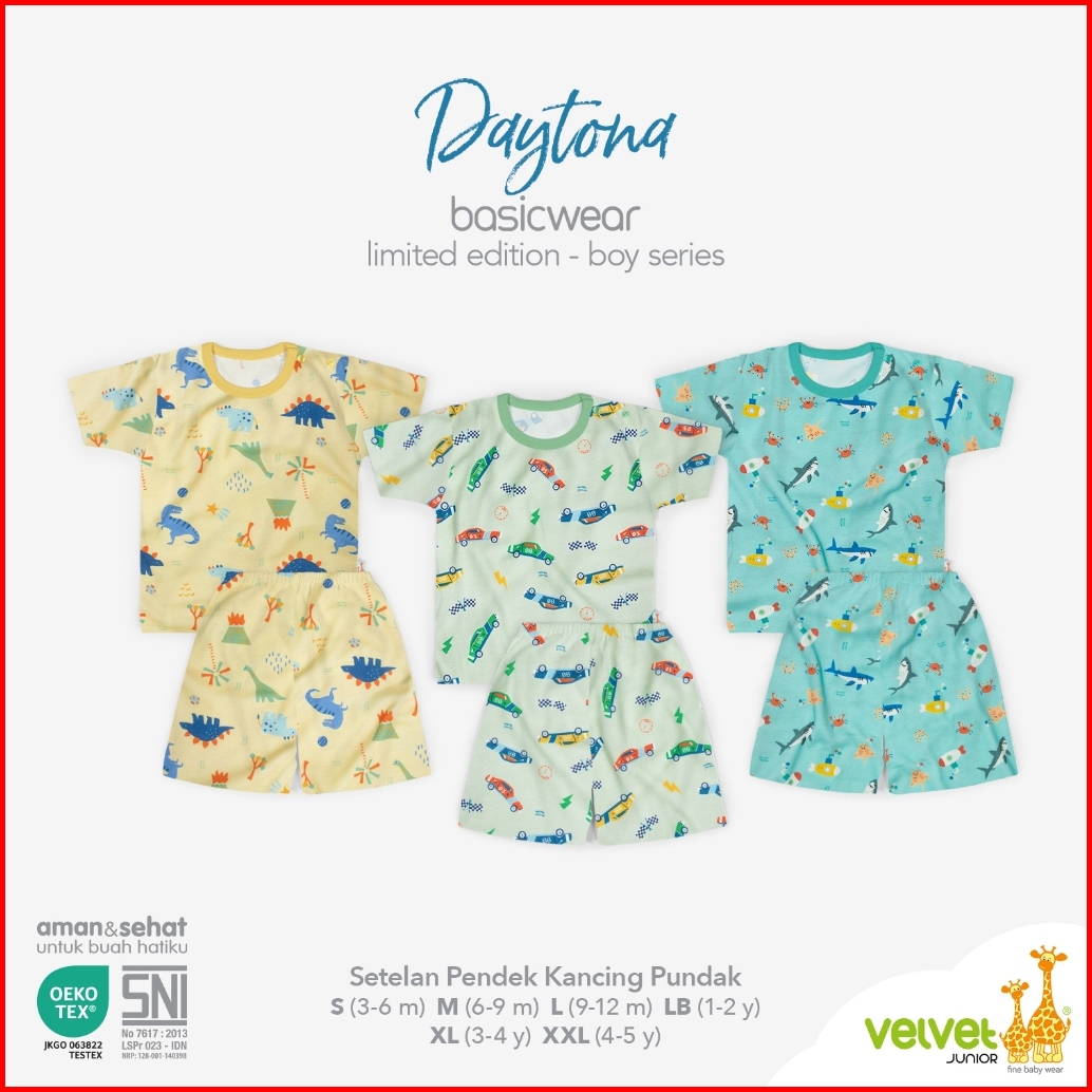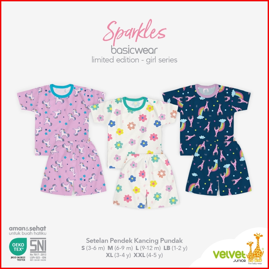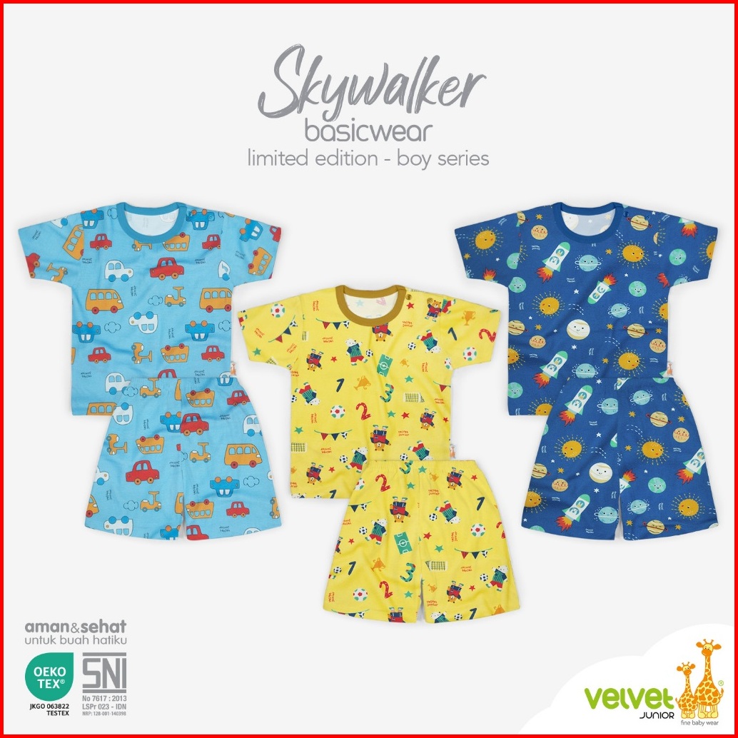 Velvet Junior Basicwear Limited Setelan Baju Anak Kancing Pundak Tangan Pendek Celana Pendek Boy And Girl Series Motif T