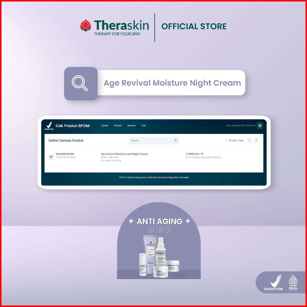 Theraskin Age Revival Moisture Lock Night Cream 10g - Krim Malam Anti Aging Flek Retinol Niacinamide Bpom Halal