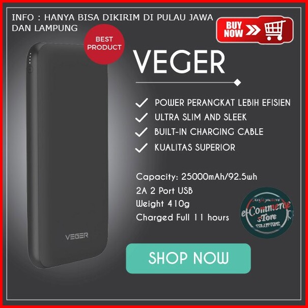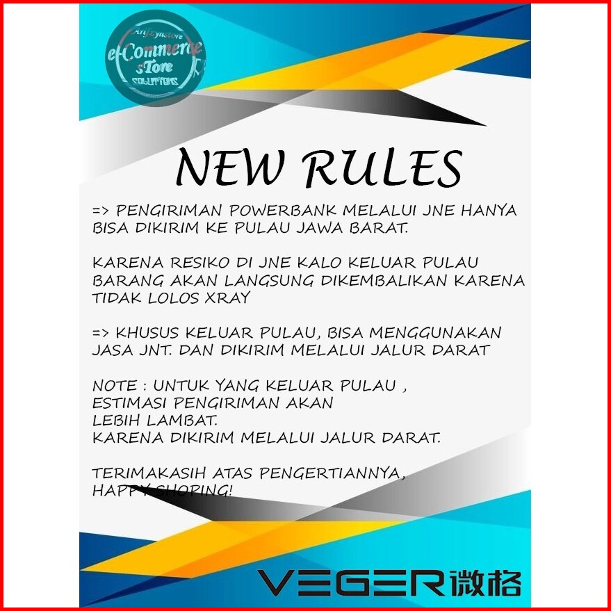 Power Bank Veger 25000mah Original Garansi Resmi 1th Original Fast Charging V16
