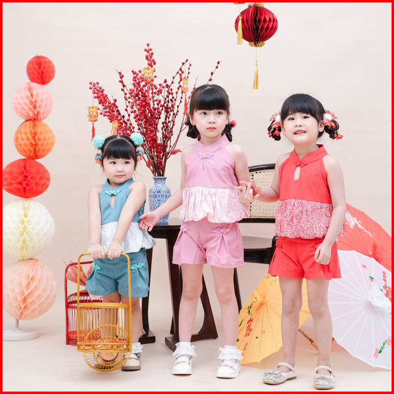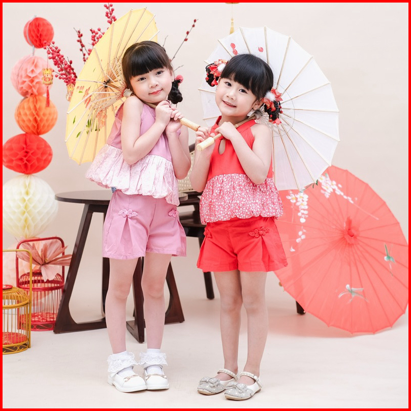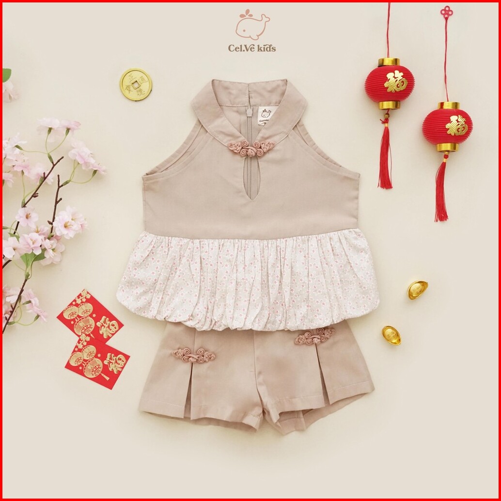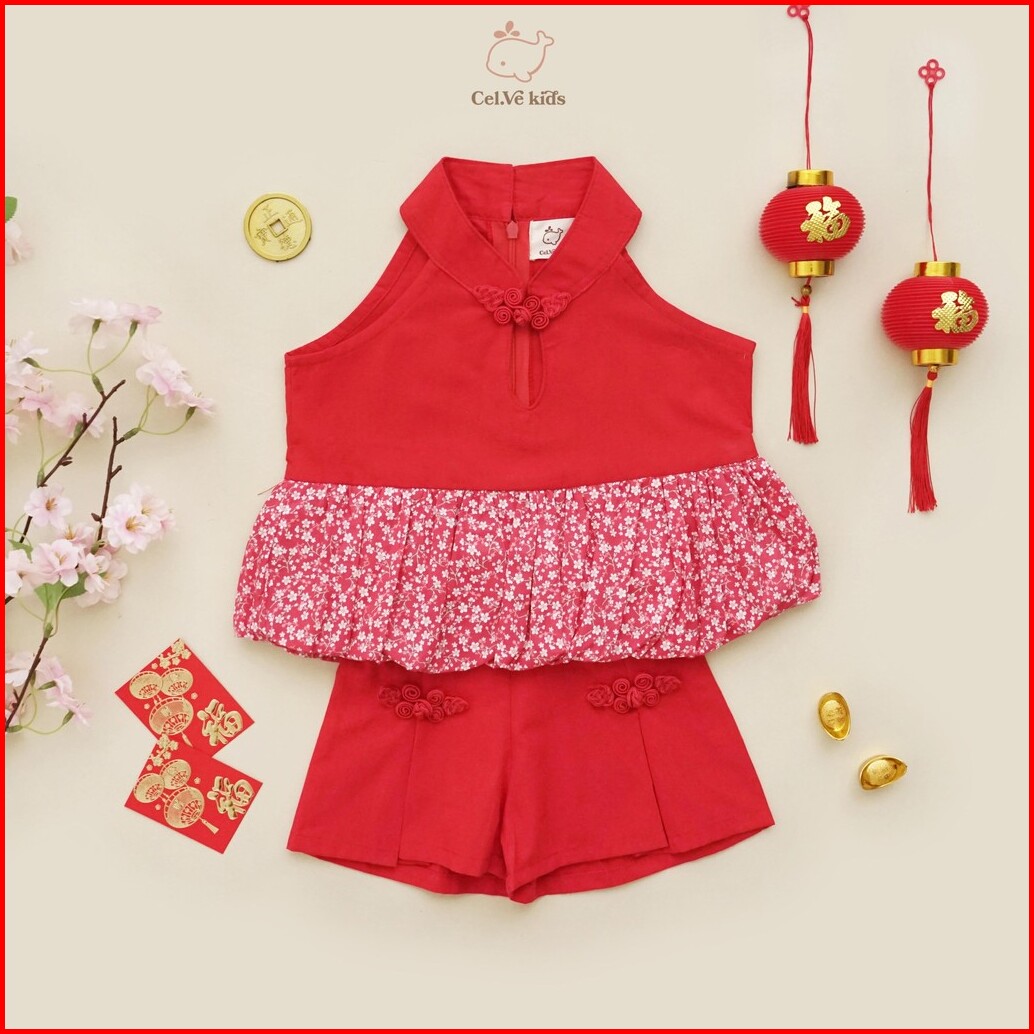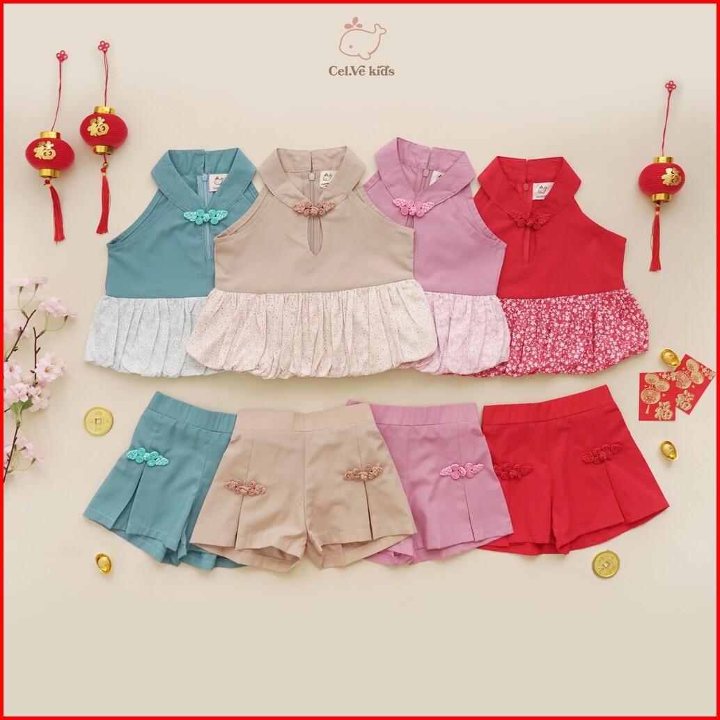 Celvekids - Stelan Shu Ye Set Cny Celana Anak Perempuan Korean Style Bahan Cotton Usia 1-6th
