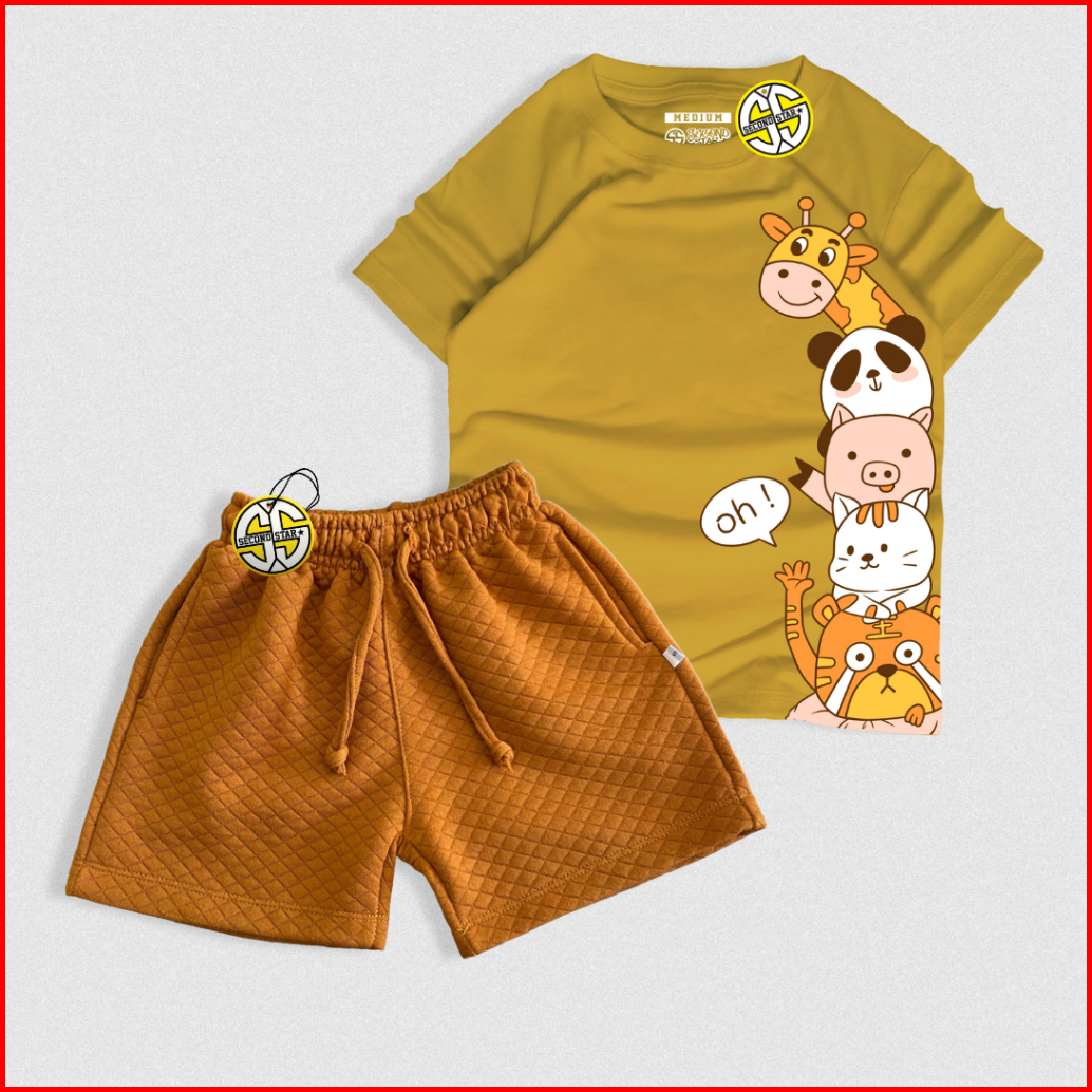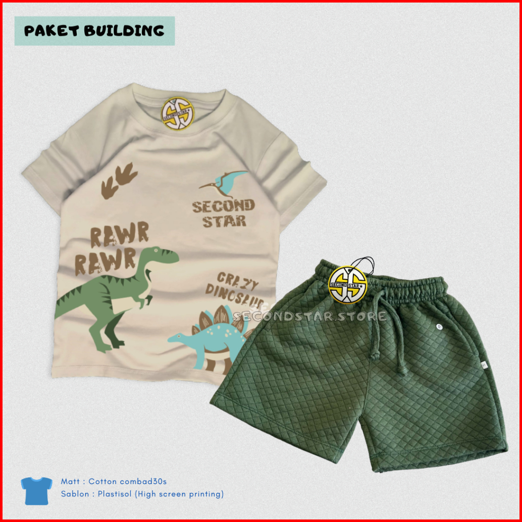 Secondstar Setelan Anak Laki-laki Perempuan Usia 1-10 Tahun Kaos Distro Dan Celana Pendek