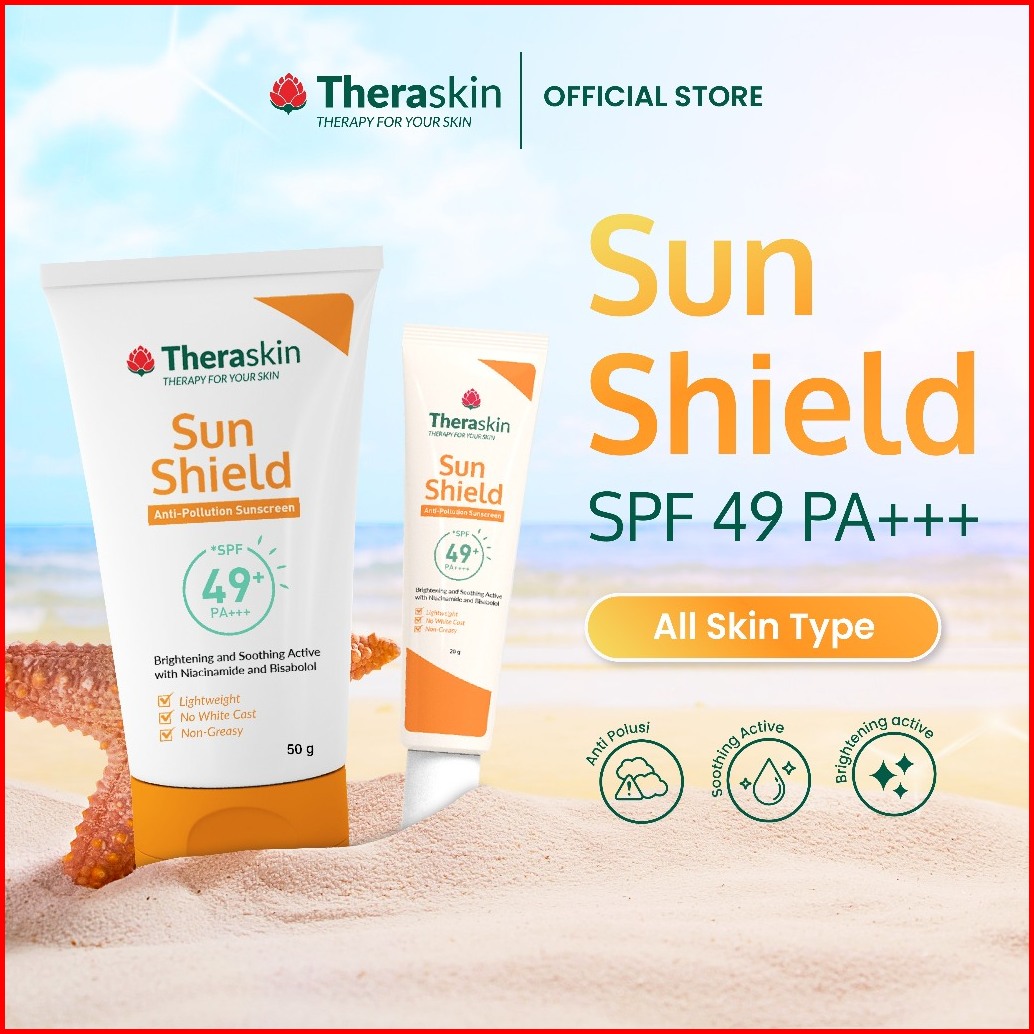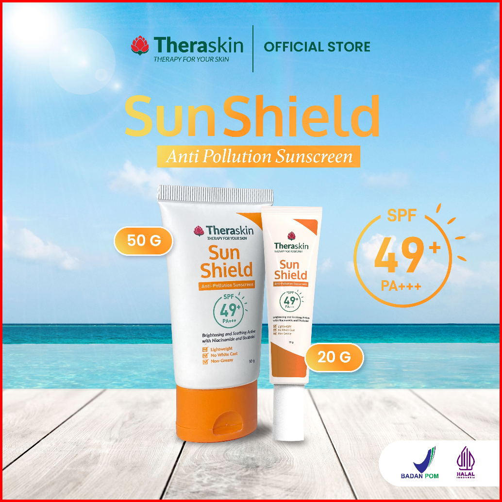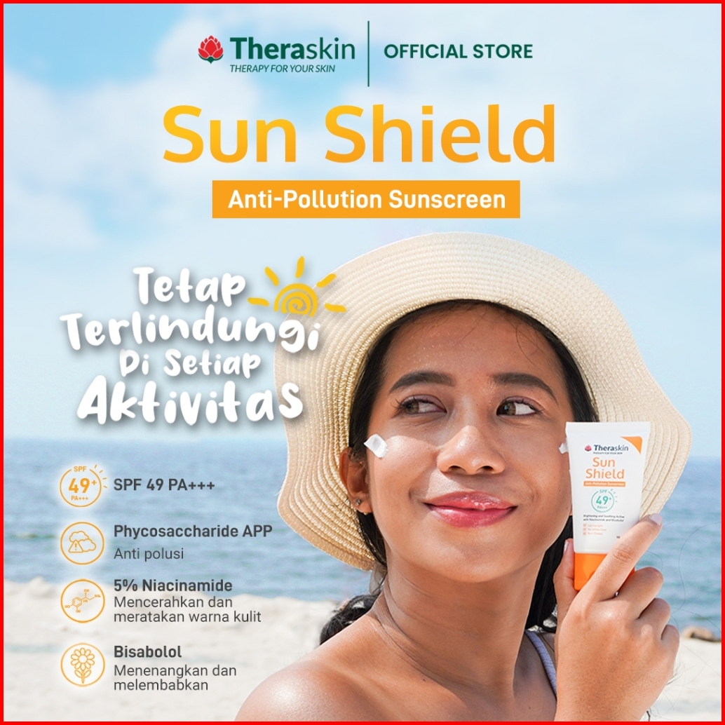Theraskin Bpom Sun Shield Spf49 Pa Anti Pollution Sunscreen Plus Niacinamide -melindungi Mencerahkan