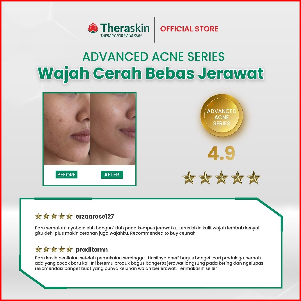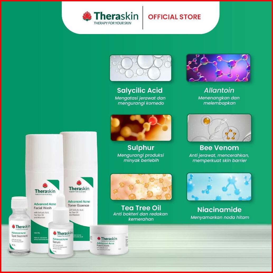 Theraskin Bpom Advanced Acne Series - Paket Perawatan Jerawat 5pcs Dengan Bha Dan Niacinamide