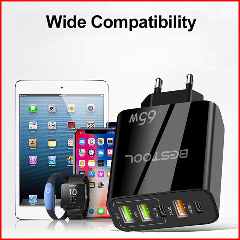 Bestool 65w Adapter Charger Usb Travel Charger Quick Charging Type C 2pd 3usb Adaptor Untuk I-phone Android Adoptor Char