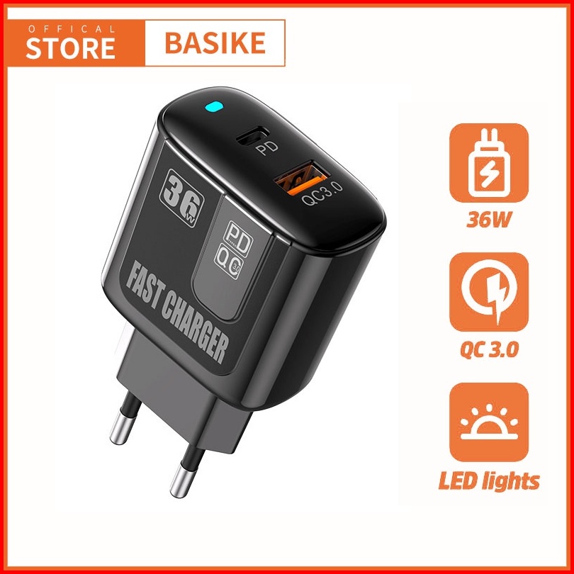 Hot Basike Charger Iphone Fast Charging 36w Type C Usb For Samsung Xiaomi Universal Mini Murah