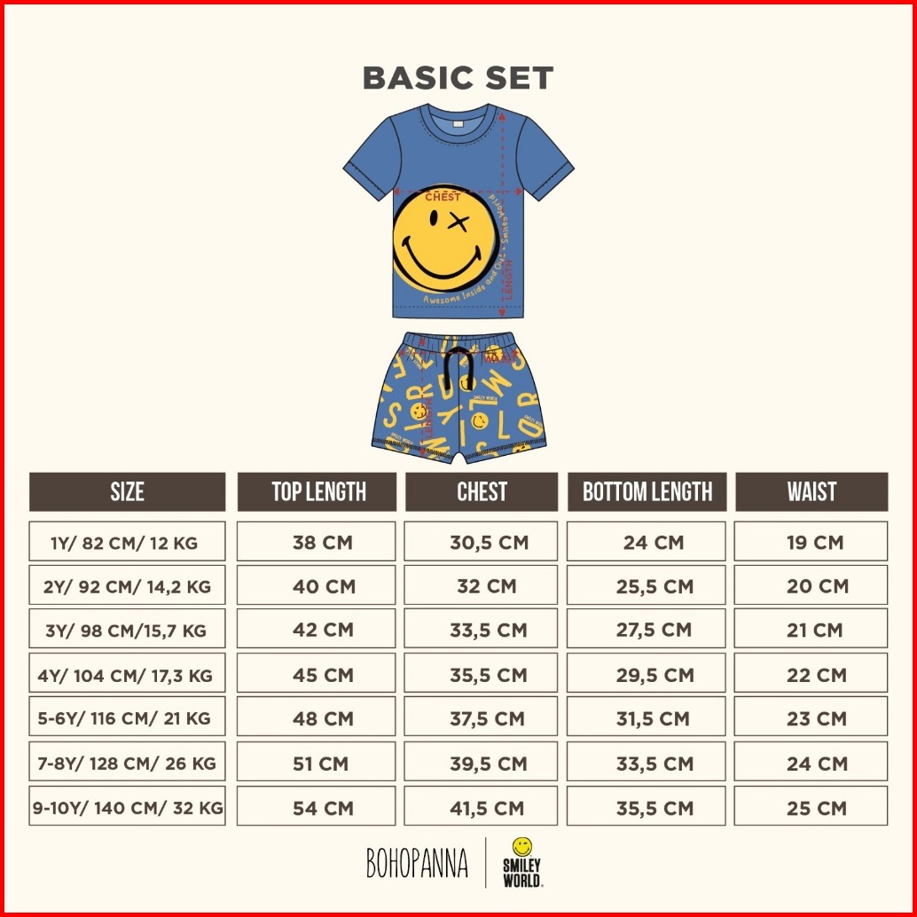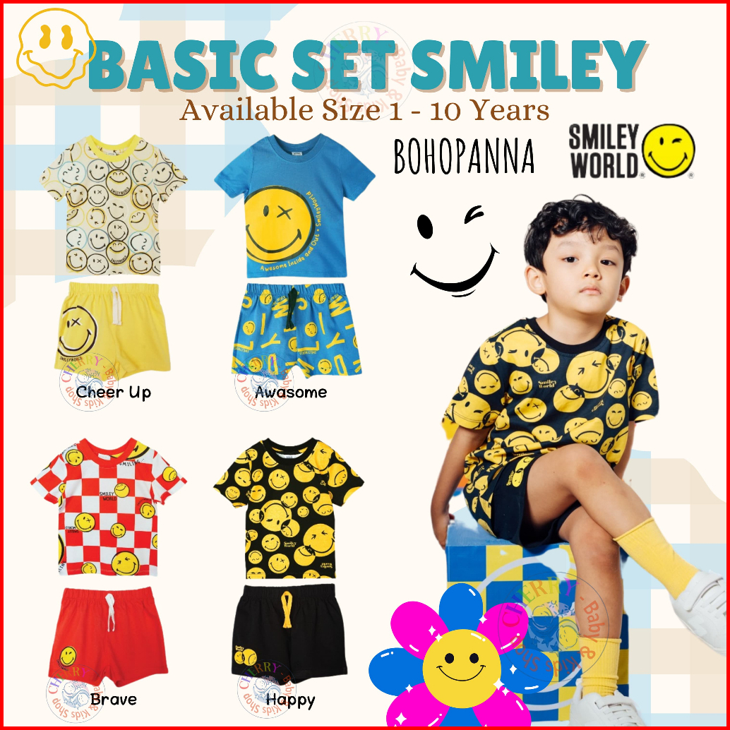 Bohopanna X Smiley 1-10 Tahun Basic Set Setelan Motif Kombinasi Anak Unisex Cbks