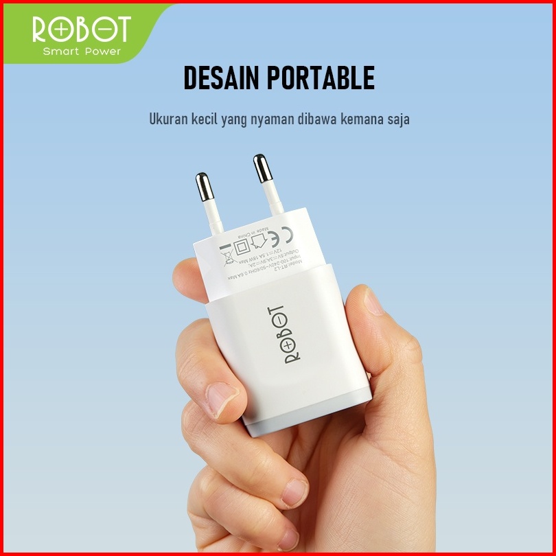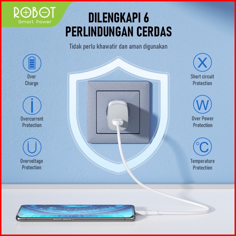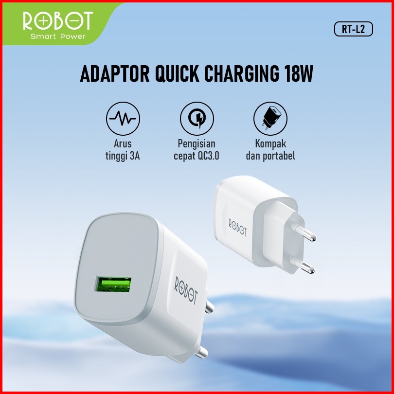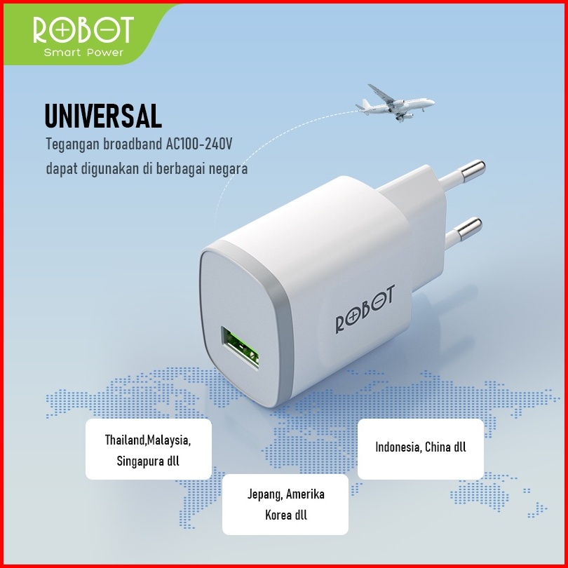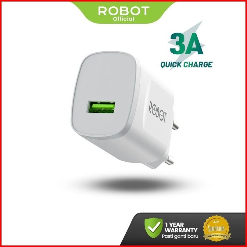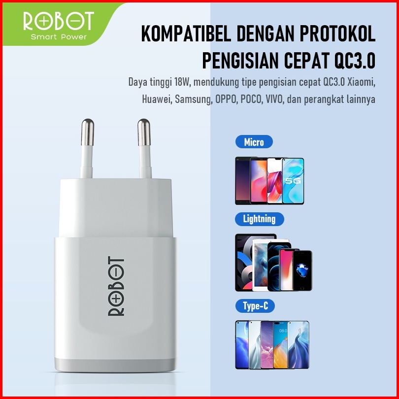 Robot Charger Rt-l2 Single Port Quick Charging 18w Qc3.0 Original Micro Usb Type C Lightning - Garansi 1 Tahun