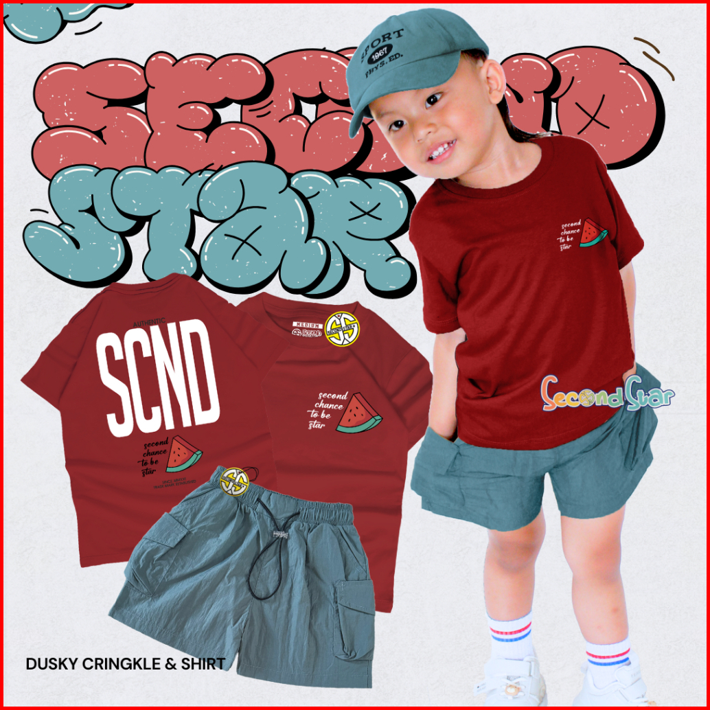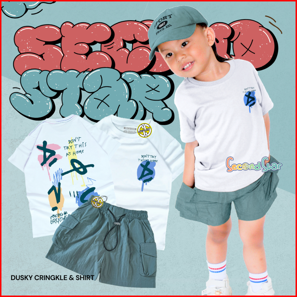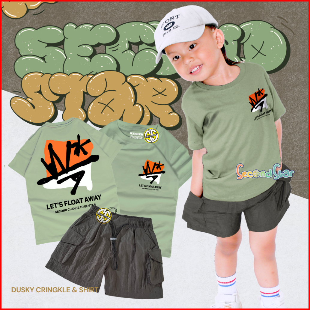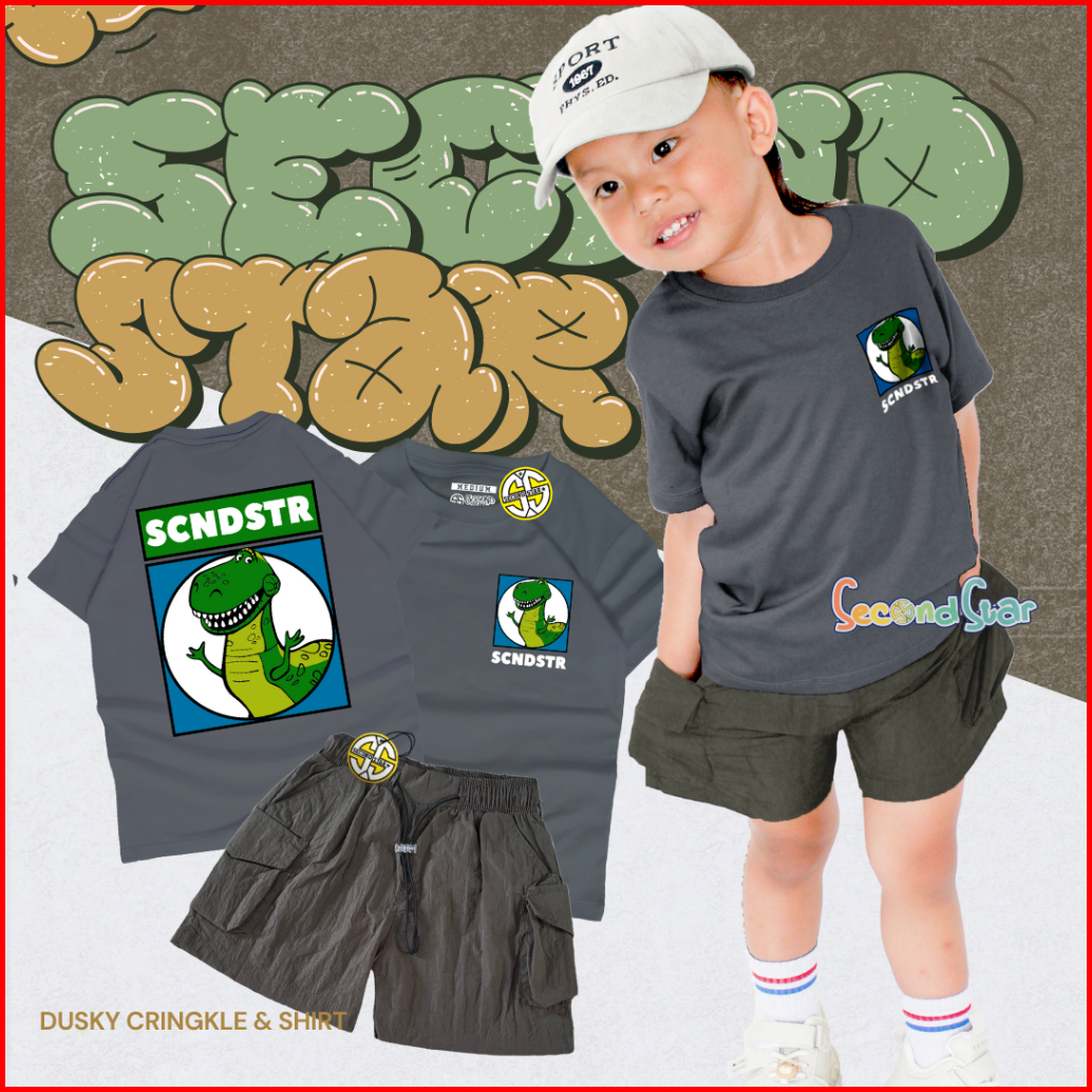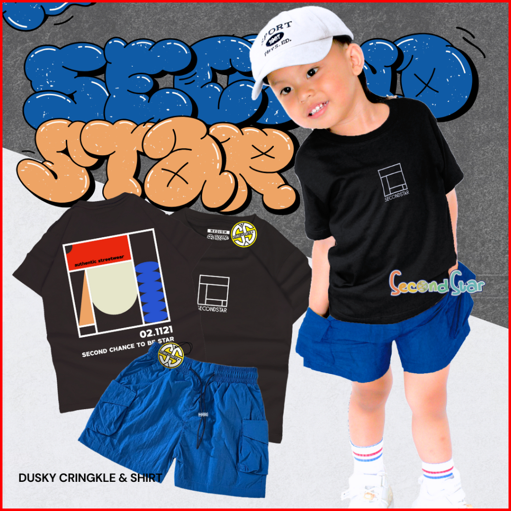 Second Star Setelan Anak Usia 1-10 Tahun Bundle Kaos Distro Dan Celana Pendek Pendek Cargo