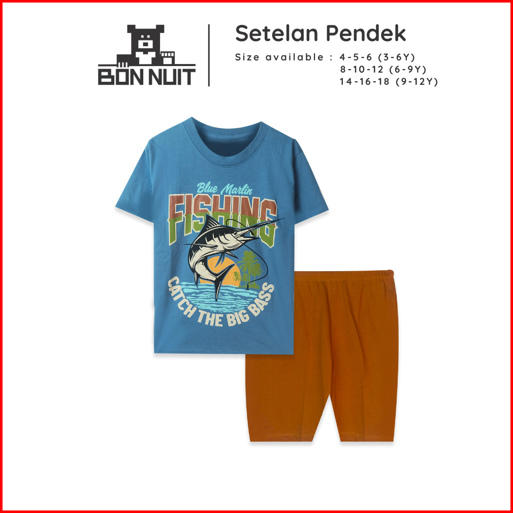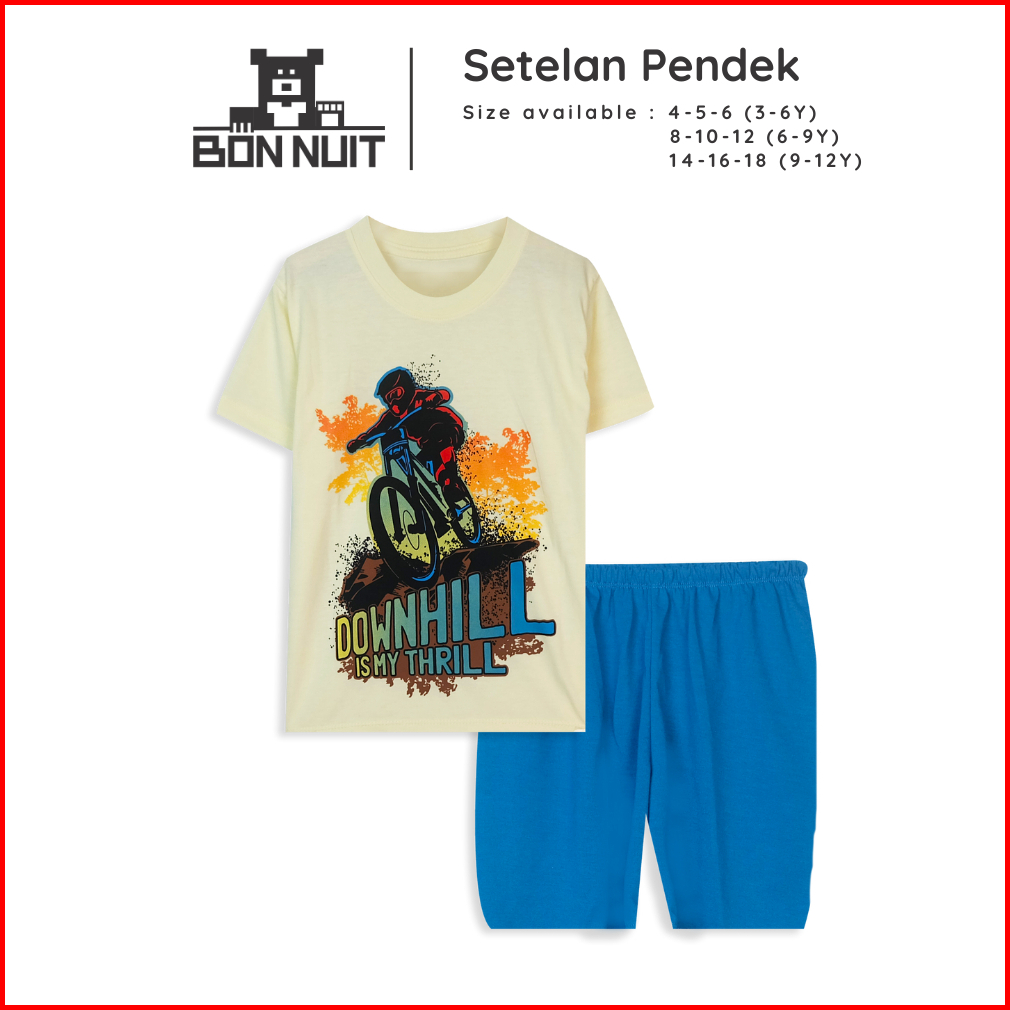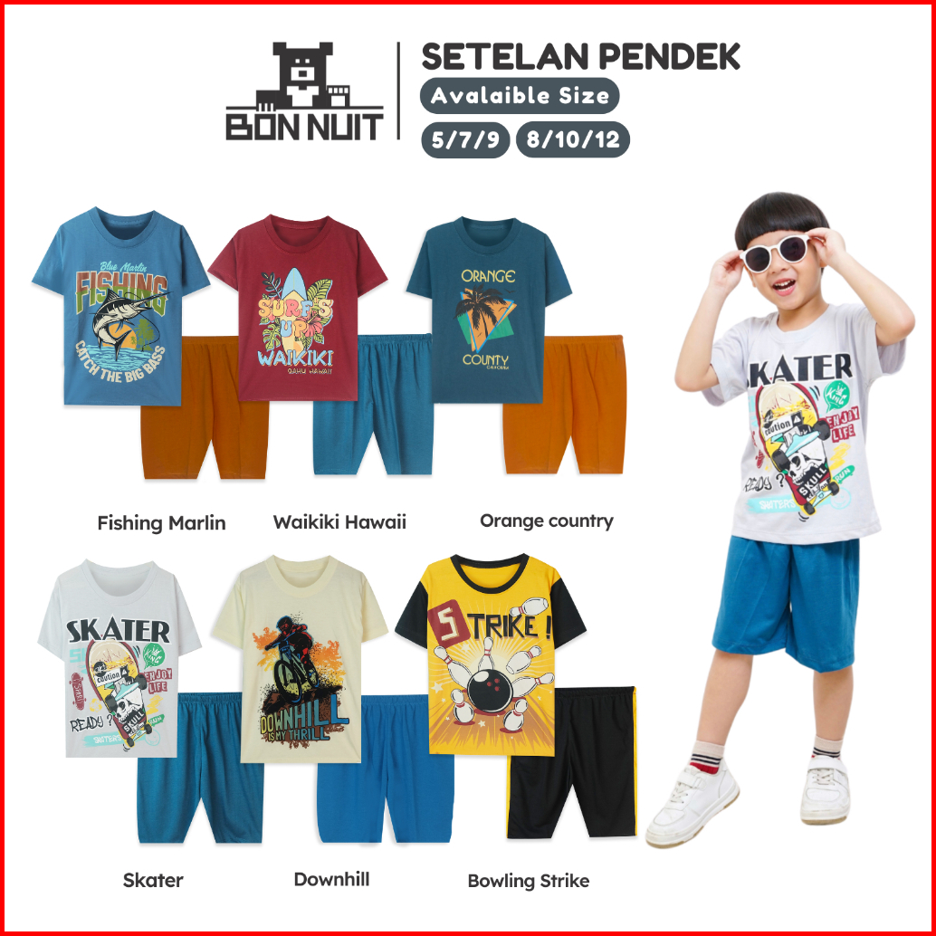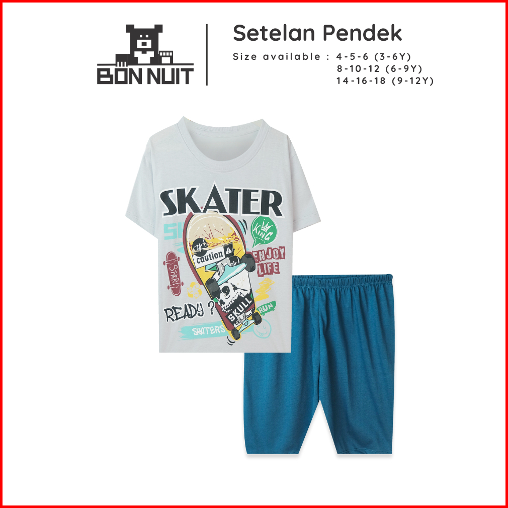 Bonnuit - Setelan Baju Anak Laki -laki Lengan Pendek Skater Usia 9-12 Tahun