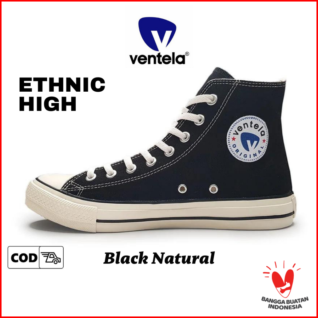 Ventela Ethnic High Black Natural Sepatu Kanvas