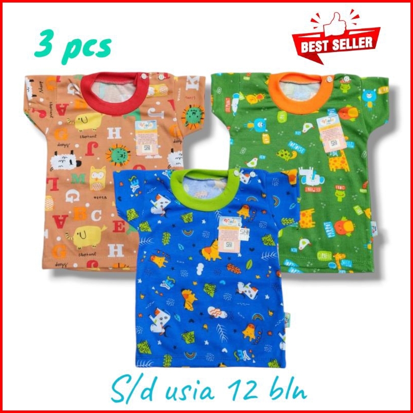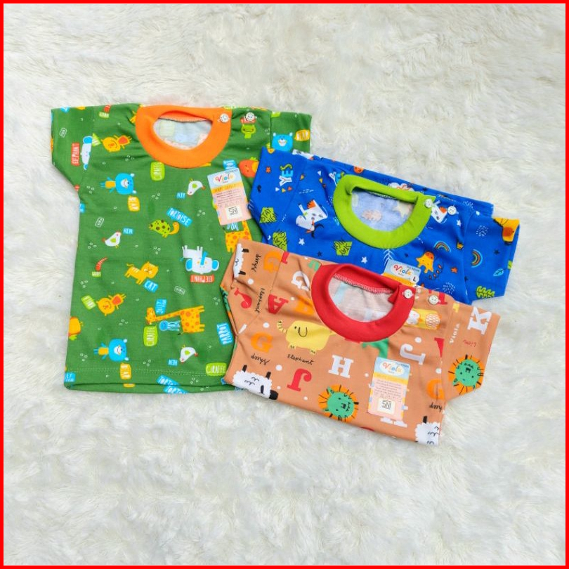 Viola 3 Pcs Baju Kaos Bayi S M L Xl Lengan Pendek Motif Print