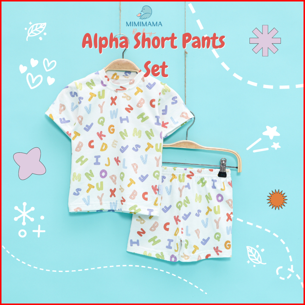 Mimimama Alpha Set Setelan Pendek Cotton Anak Usia 0-3 Tahun