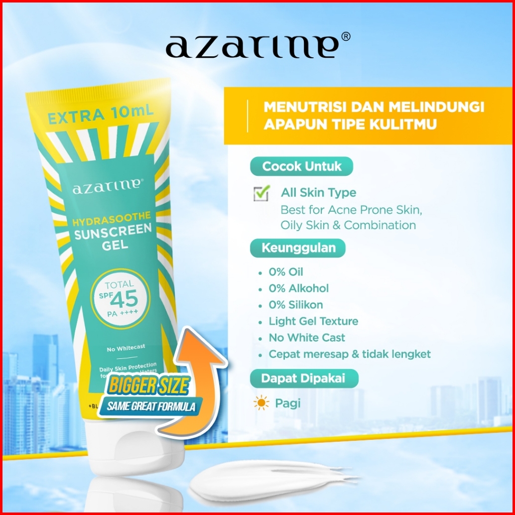 Bigger Size Gel Azarine Hydrasoothe Sunscreen Gel 45 Pa 110ml Lolos Uji Invivo Invitro Best Seller Sunscreen Kulit Bermi