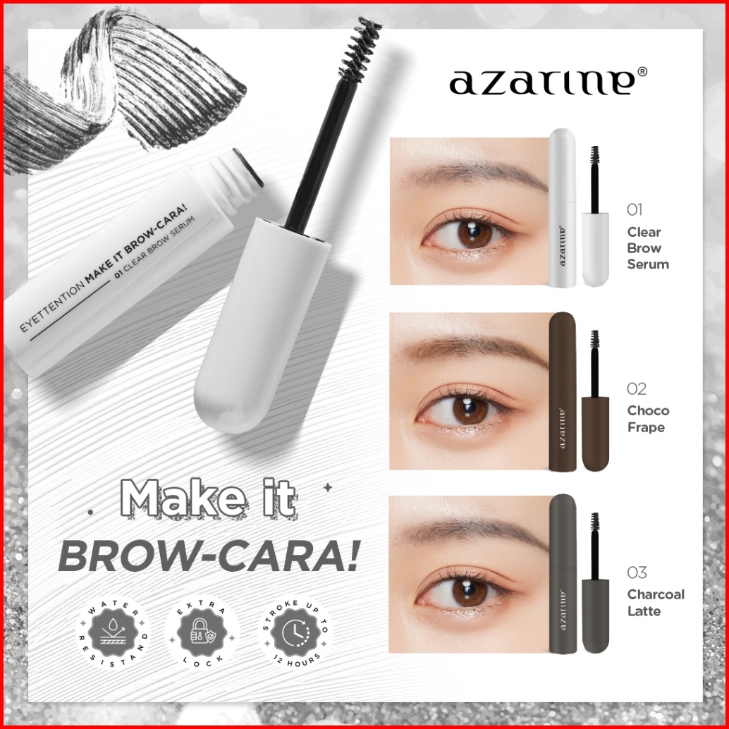 01. Clear Brow Serum, 02. Choco Frappe, 03. Charcoal Latte