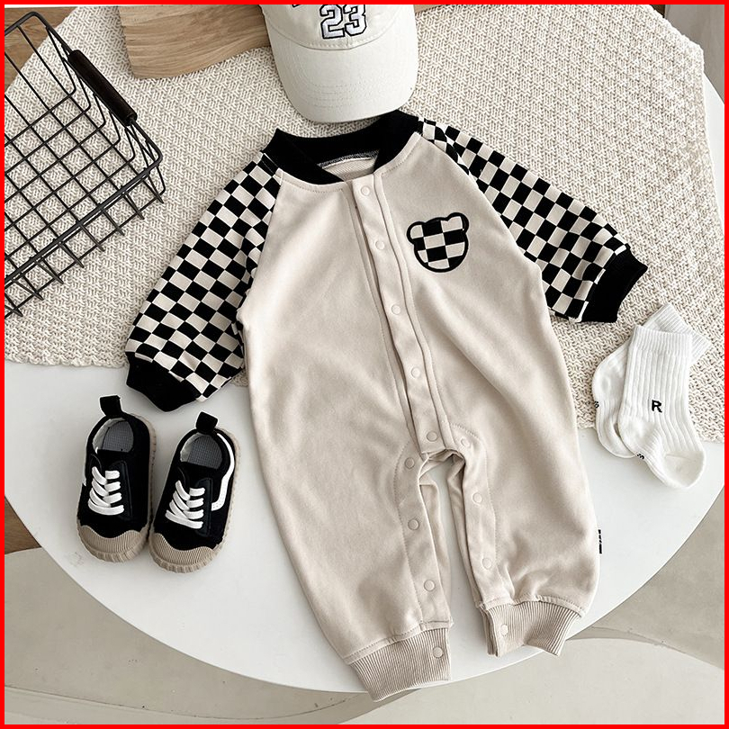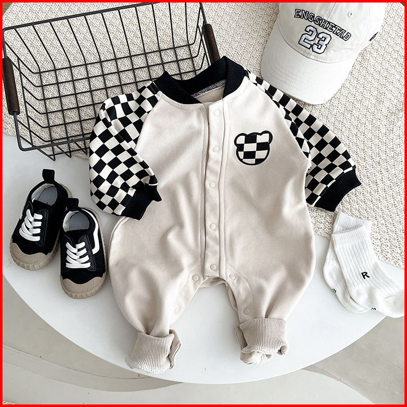 Jumper Bayi Unisex Elegan Motif Kotak 018 Bulan Baju Lucu Korea Style Katun Premium Babylovanta