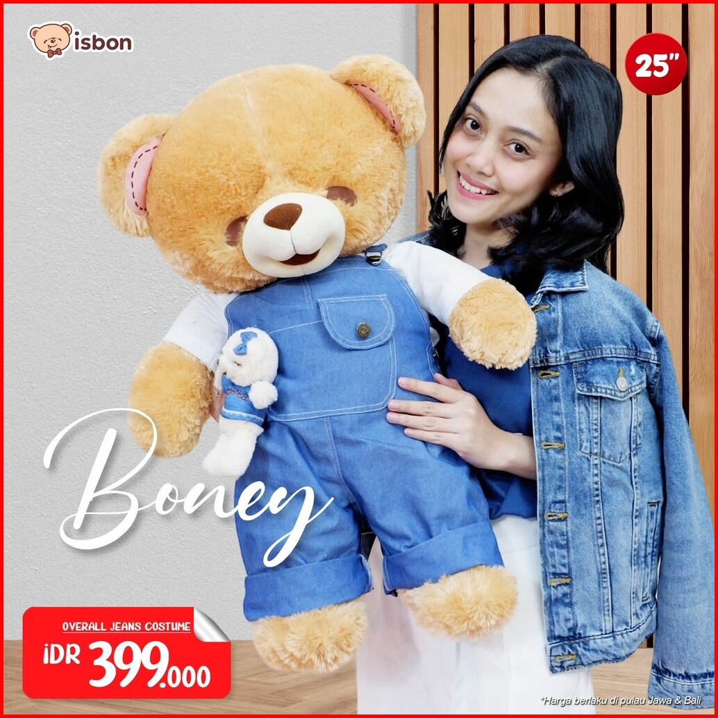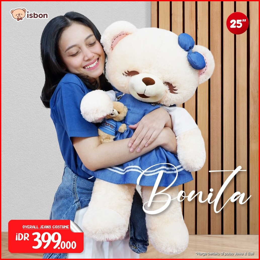 Istana Boneka Beruang Boney Bonita Baju Overoll Jeans Blue Bahan Premium Cocok Untuk Hadiah Mainan Anak