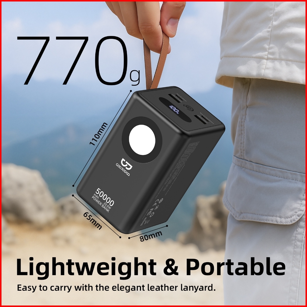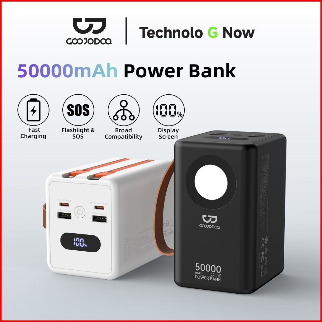 Goojodoq 22.5w 50000mah Wired Powerbank Large Capacity Fast Charging Type C Usb For Outdoor Hiking