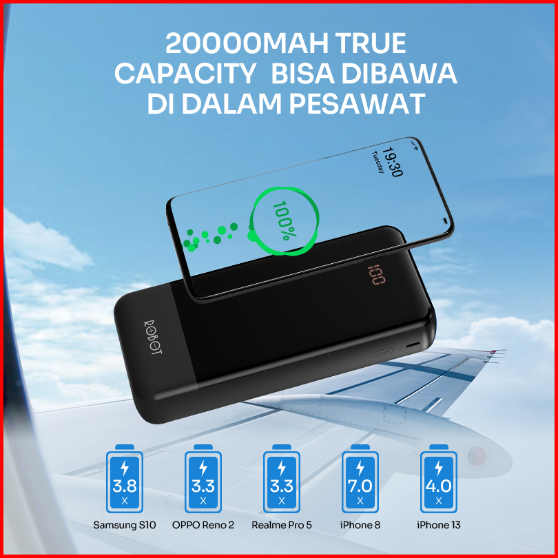 Powerbank Robot 20000mah Rp-201l 2.1a Dengan 3 Kabel Type C Lightning Micro - Garansi 1 Tahun