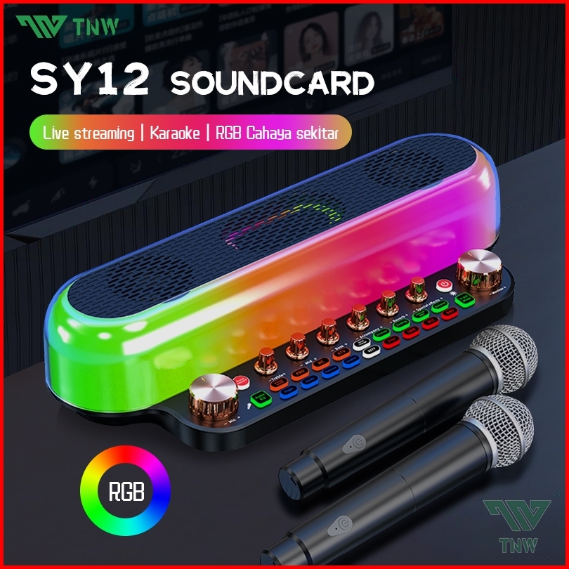 Tnw Sy12 Soundcard Bluetooth Speaker All-in-one Sound Card Mixer External Soundcard Two Wireless Microphone