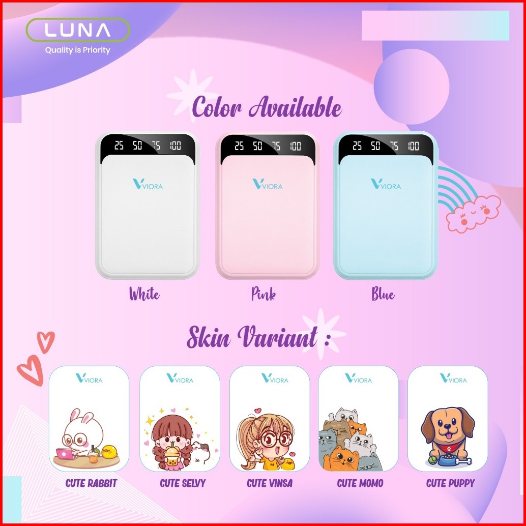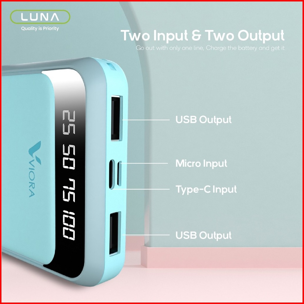 Luna Powerbank Viora 20000 Mah Fast Charging Dual Port Usb Type C