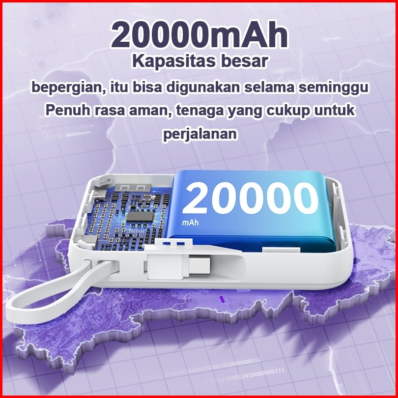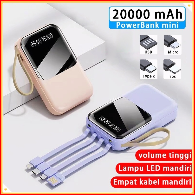 Mini Size Powerbank 20000mah Mini With 4 Kabel Fast Charging Port Type-c Lightning Micro