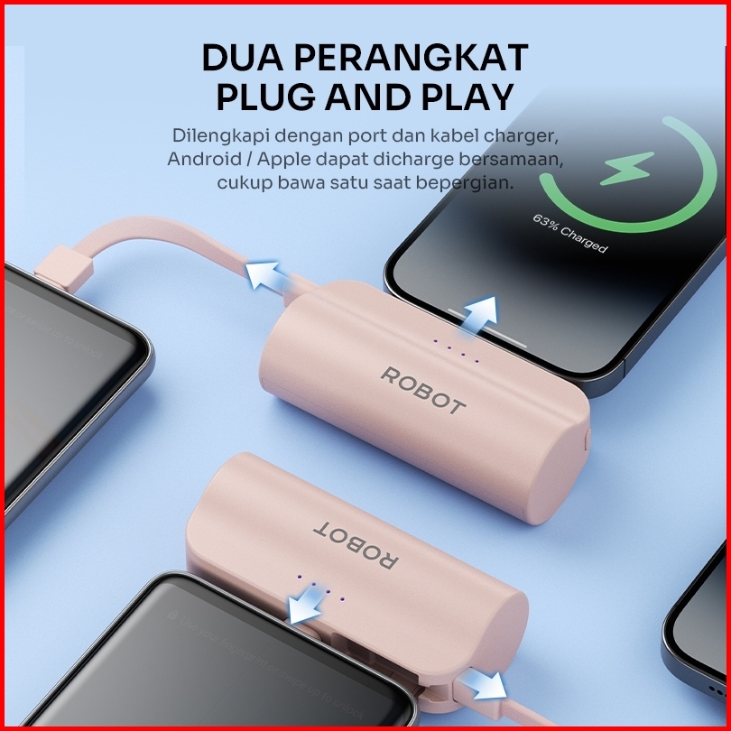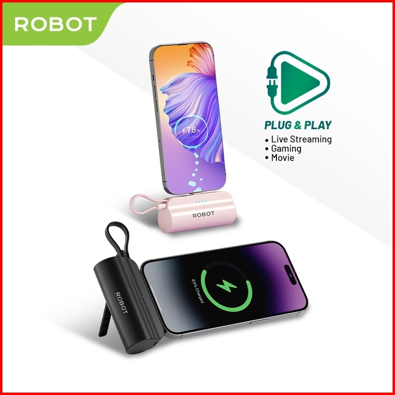 Robot Mini Powerbank Ukuran Lipstick 4500mah Port Type-c Lightning Travel Size Rp-051l Rp-051c Original Garansi 1 Tahun