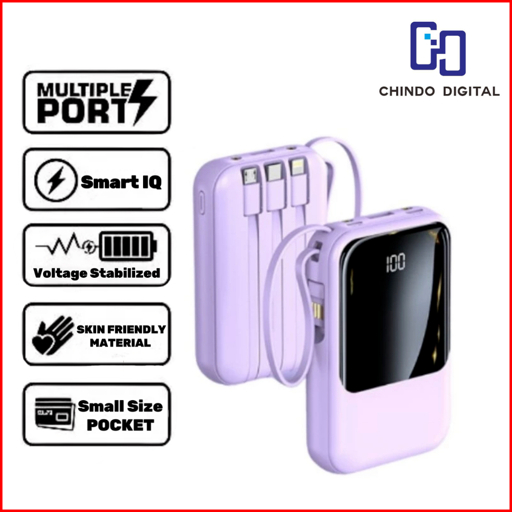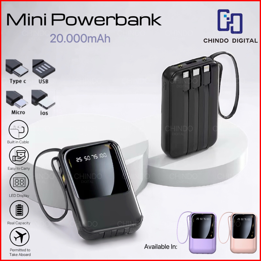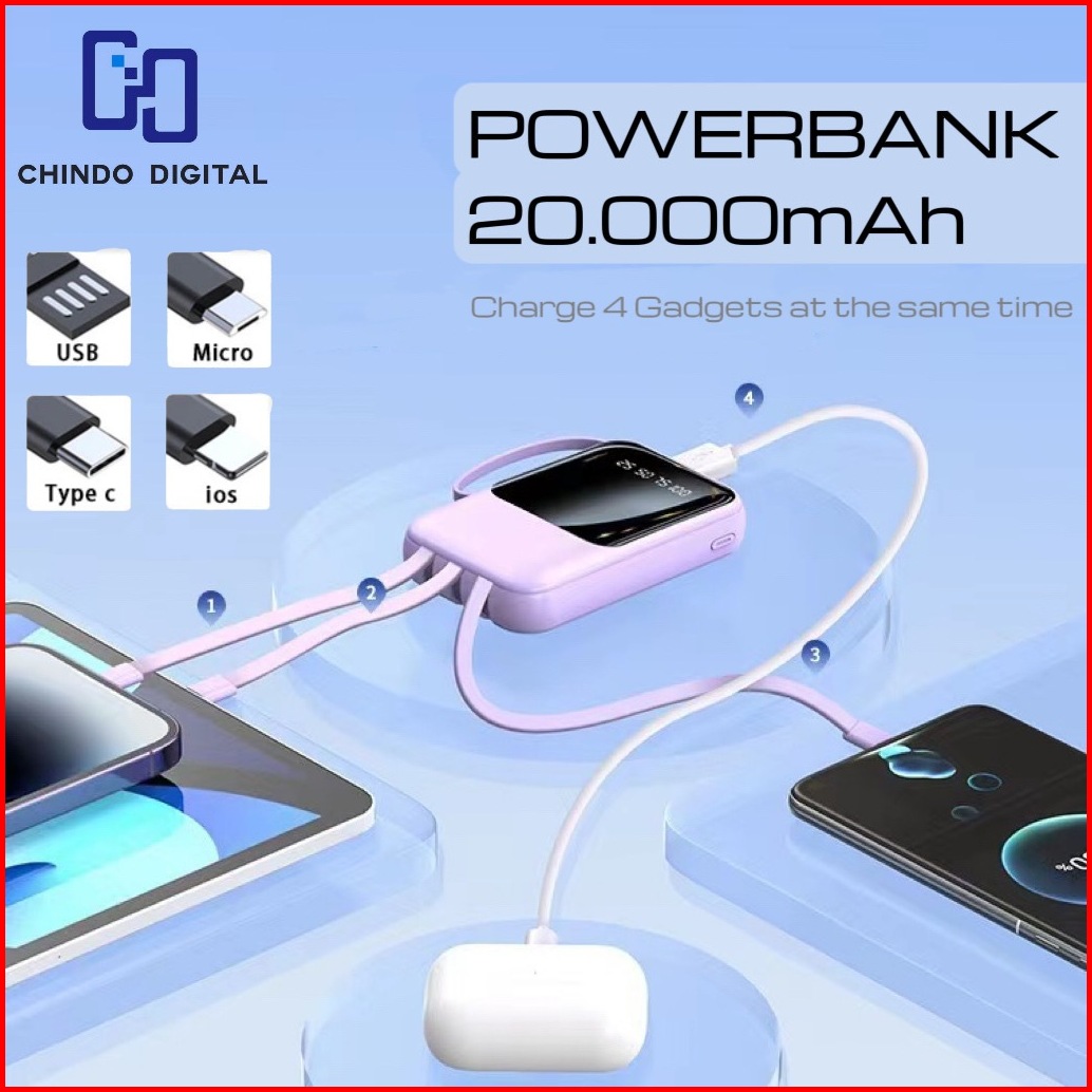 Cid Powerbank 20000 Mah Mini With 4 Usb Cable Fast Charging Lightweight Universal Powerbank Led Display