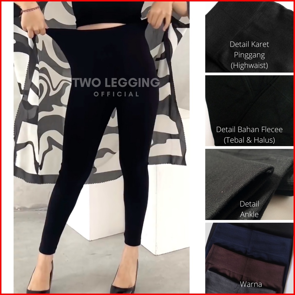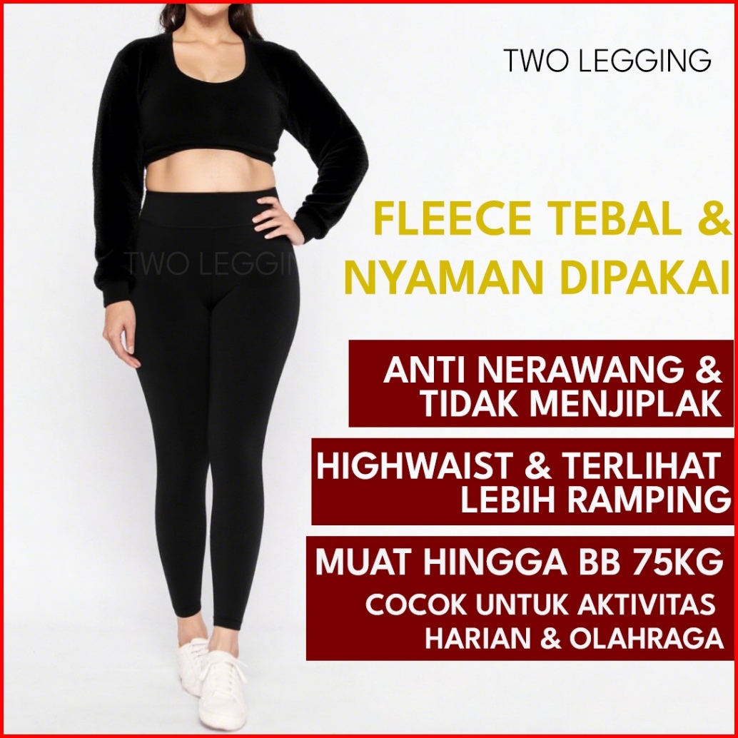 Legging Highwaist Wanita Fleece Tebal Polos Regular Plus Size