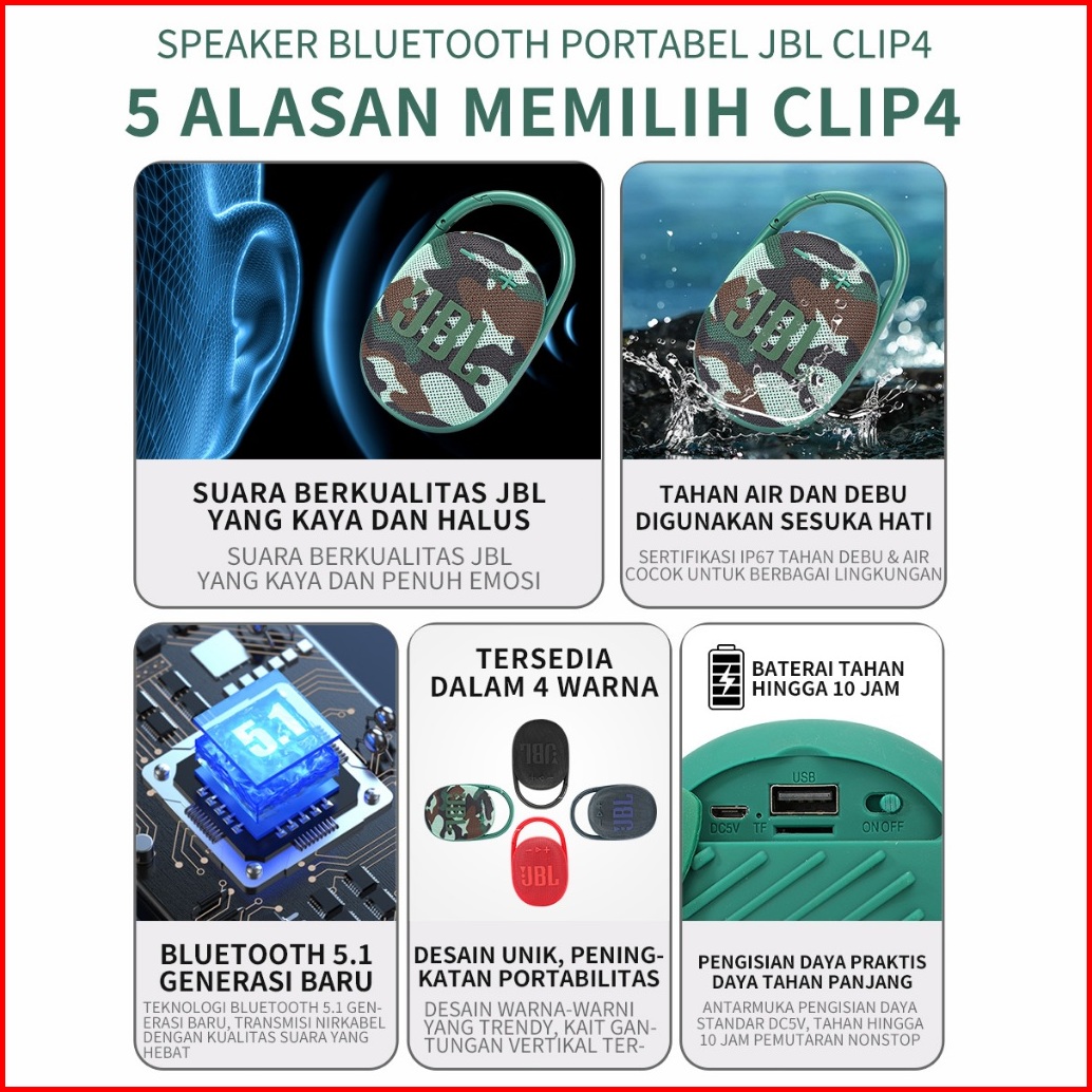 Portable Speaker Bluetooth Jbl Clip4 Wireless Super Bass Speaker Nirkabel Dan Bluetooth