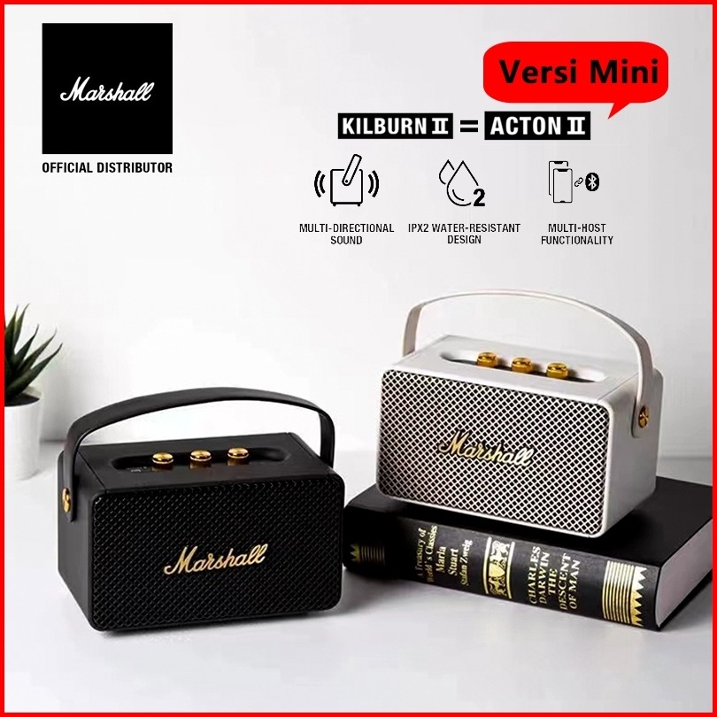 Marshall Kilburn Ii Acton Ii Bluetooth Portable Speaker Versi Mini - Black And Cream Original 100 Waterproof Speaker Lap